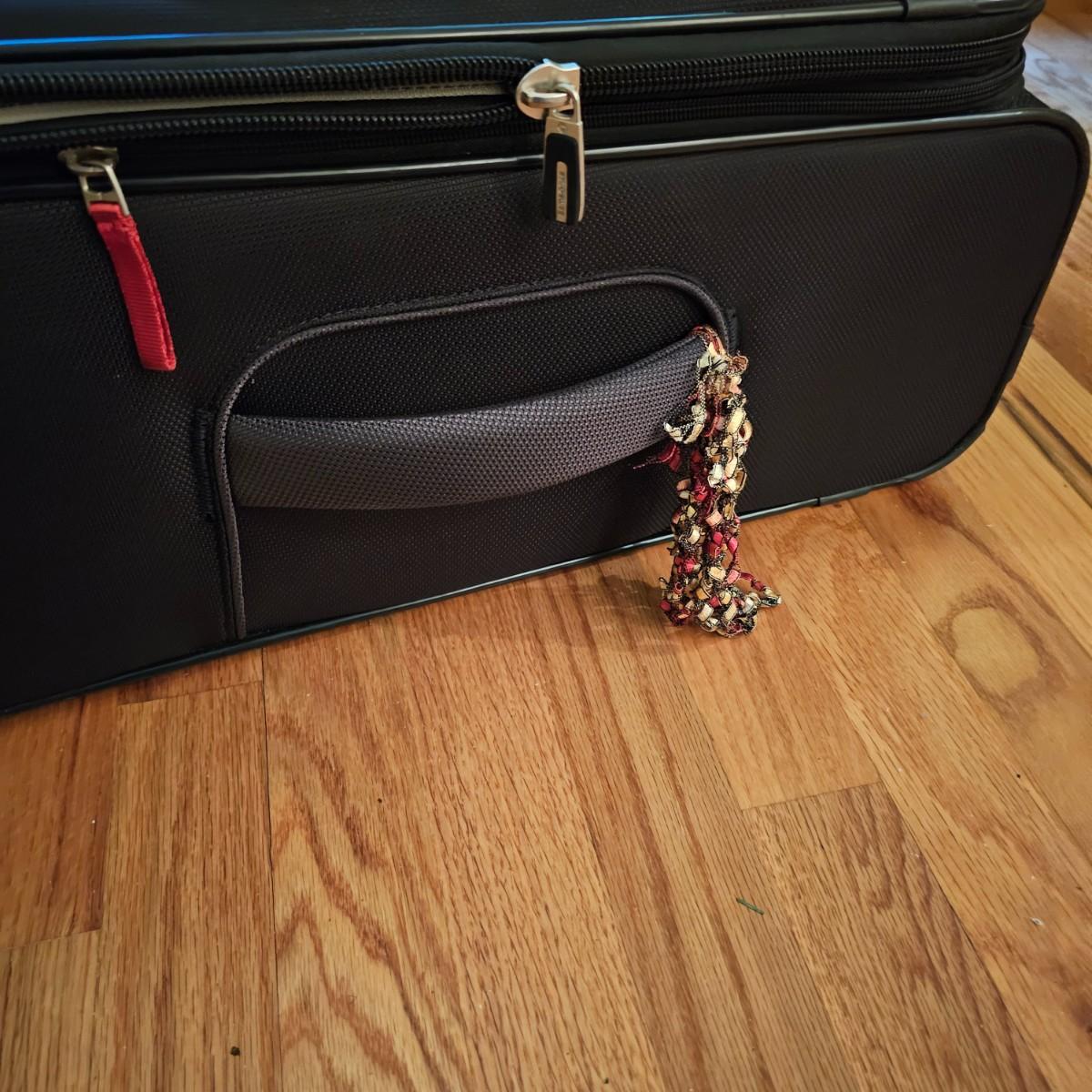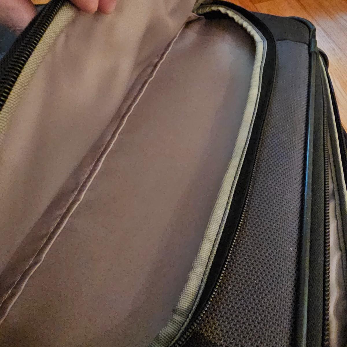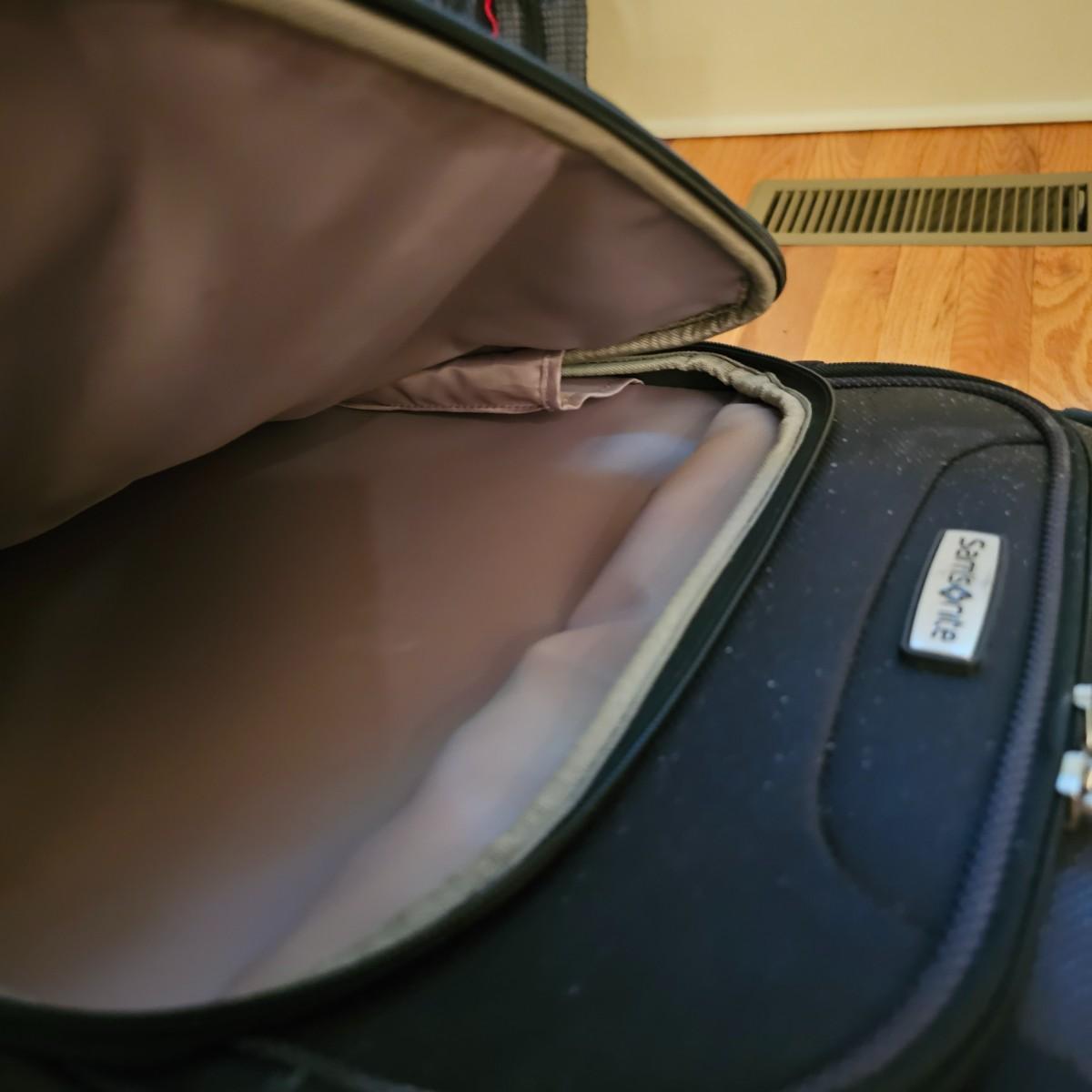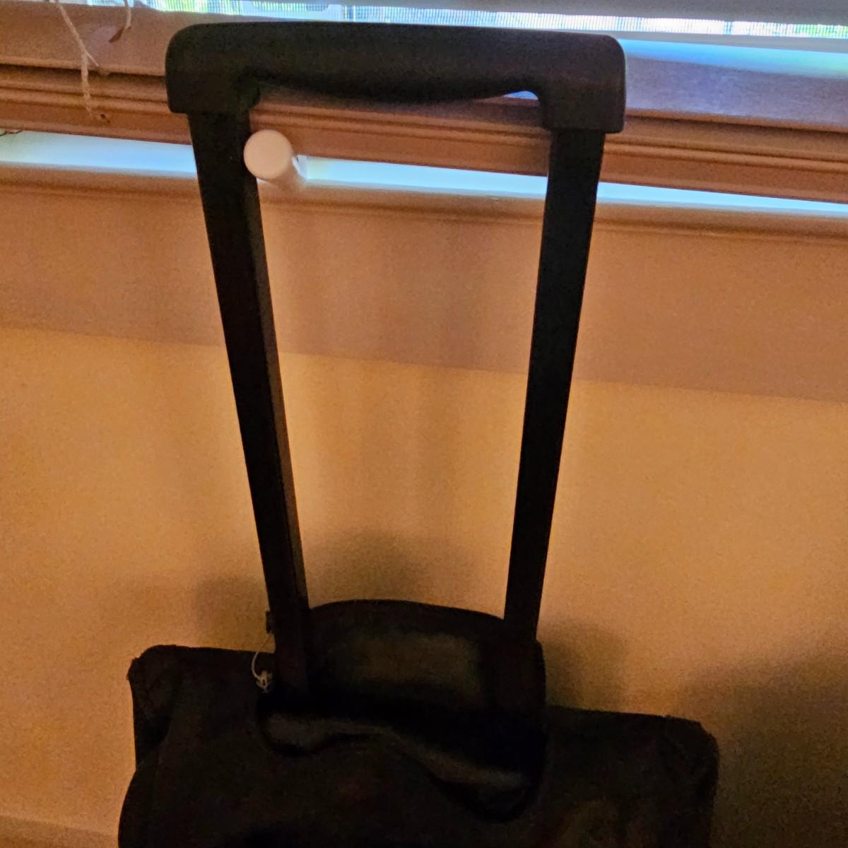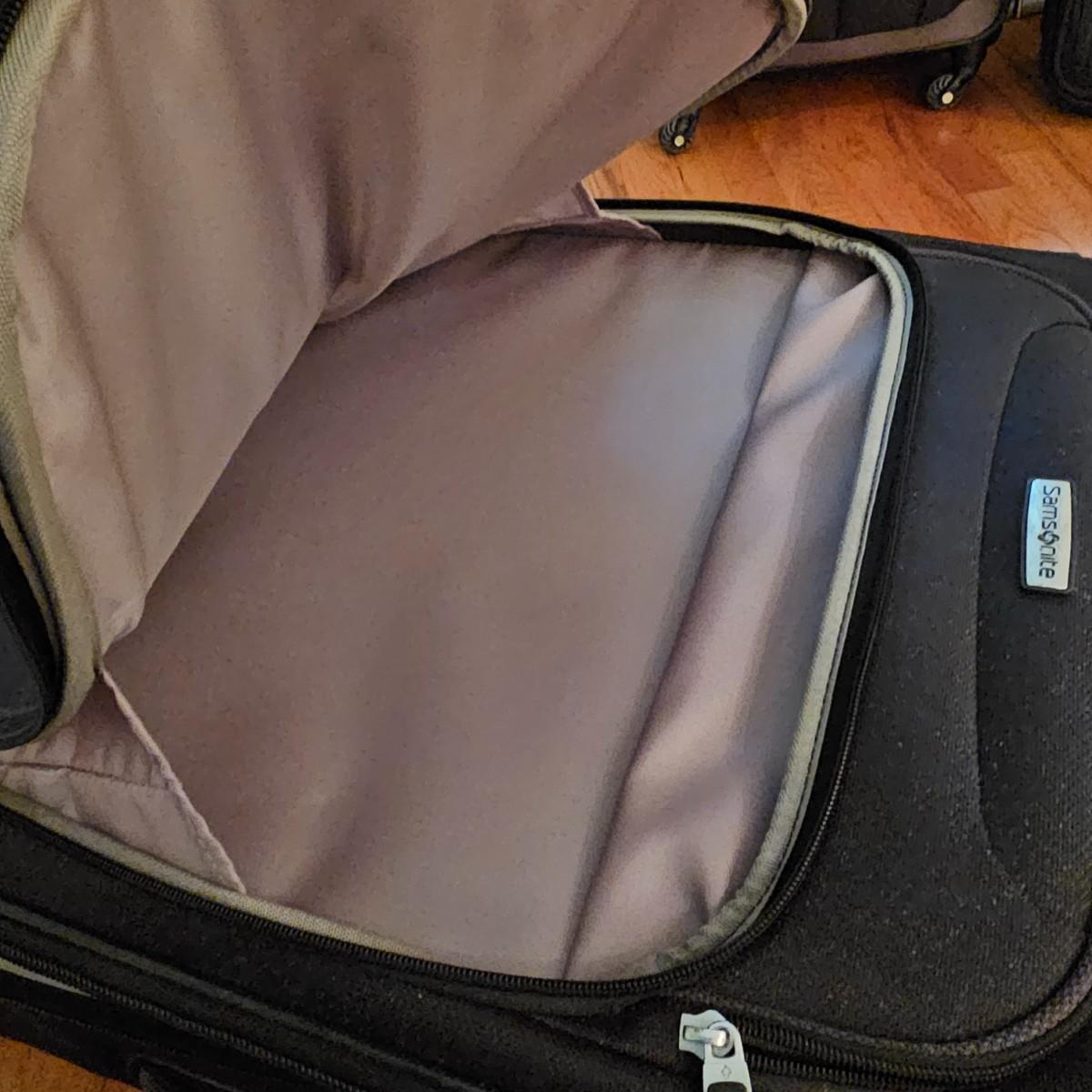 Seven pieces of luggage/travel gear. Two matching pieces of Samsonite luggage, large is 19" x 12" x 31"H, small is 16" x 11" x 24"H. Rolling wheels, extendable handles, multi pockets. One Kirkland small luggage, 14" x 9" x 24"H. Wheels and handle. One Ricardo hanging garment bag, 24" x 42" with carry handle. One Kelty large duffel style bag, 34" x 16". Two Kelty rolling cart/luggage combos, 17" x 9" x 31"H. Extendable handles and wheels. See photos for details. Local pickup only.