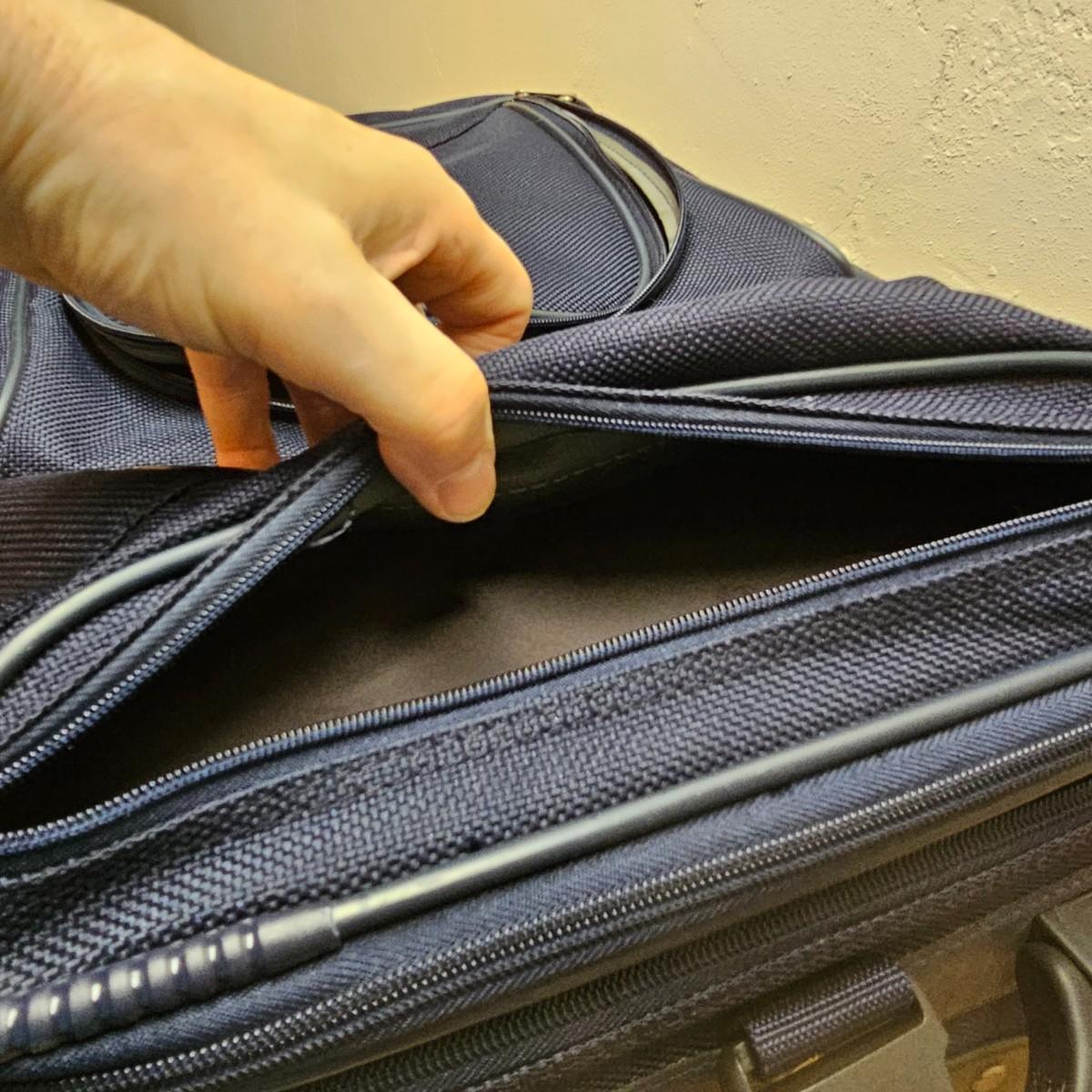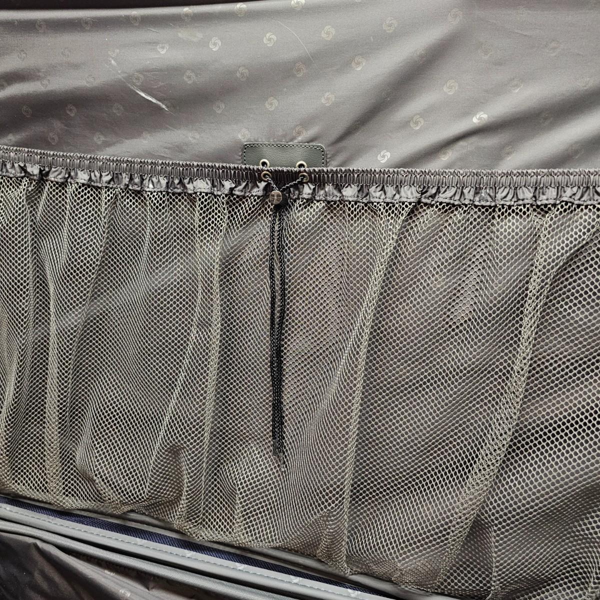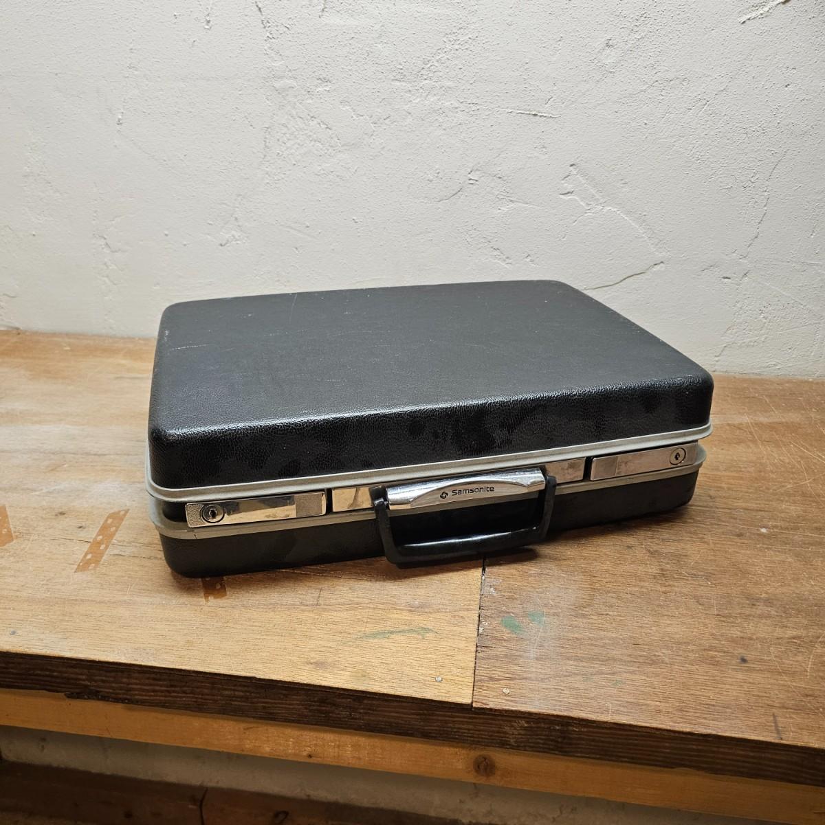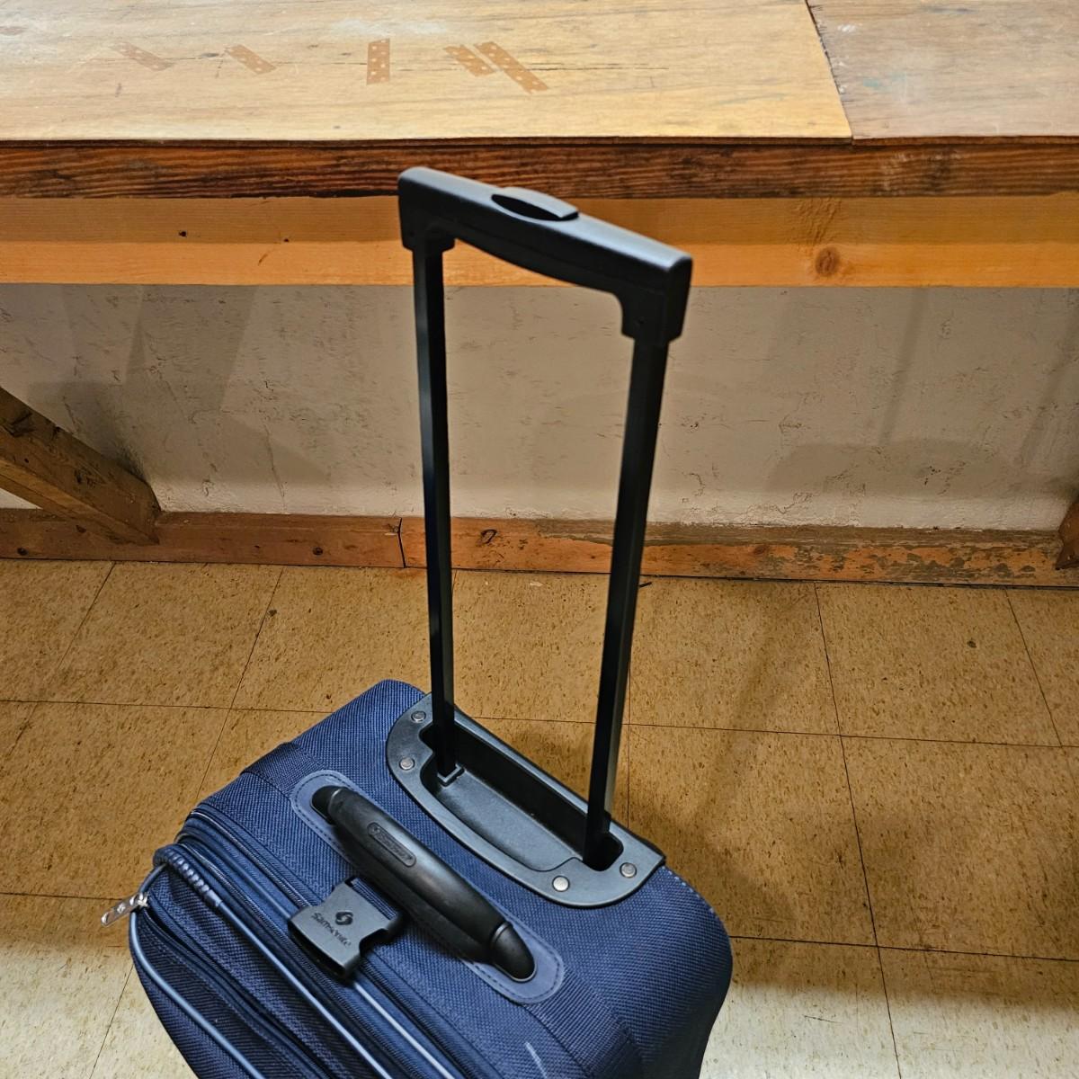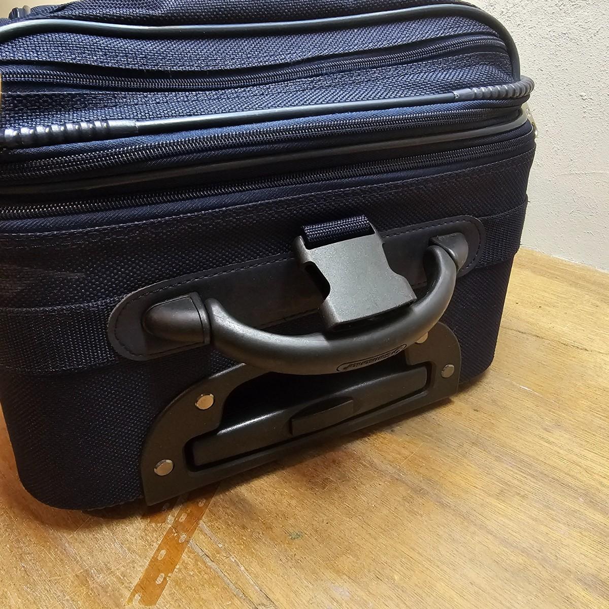 A matching set of dark blue Samsonite travel luggage and also a Samsonite hardshell briefcase. Larger suitcase has two outside compartments, extendable pull handle, wheels and more. Webbing strap inside to hold items securely. Measures 22" x 13" x 35"H. Has a few small pull spots on exterior. Smaller suitcase has same features as larger, measures 16" x 10" x 26"H. Briefcase has folder spots in lid but is otherwise open inside. Measures 18" x 14" x 5"H. See photos for details. Local pickup only.