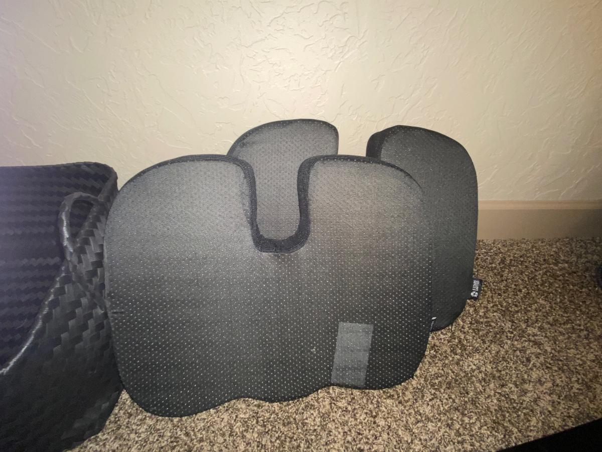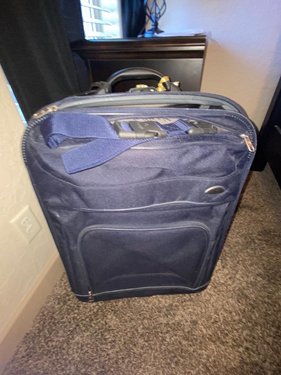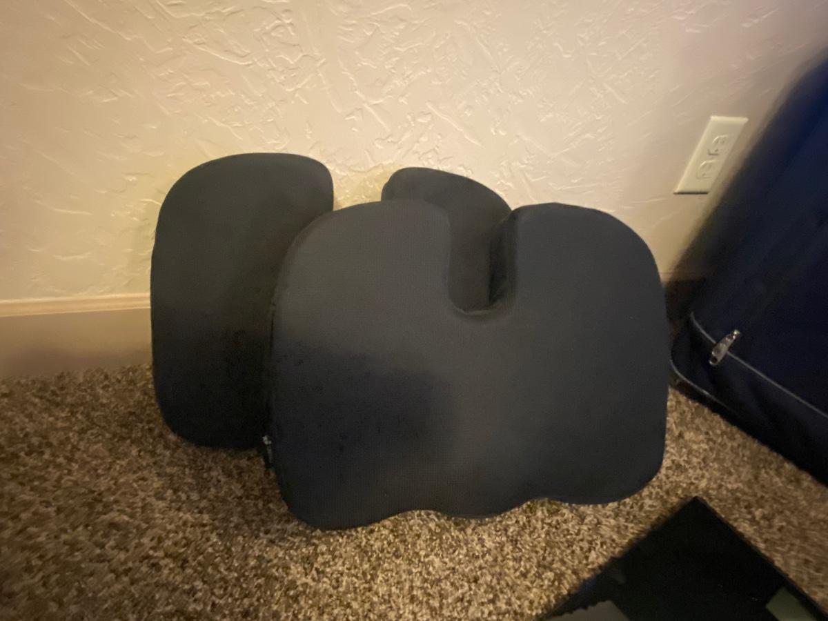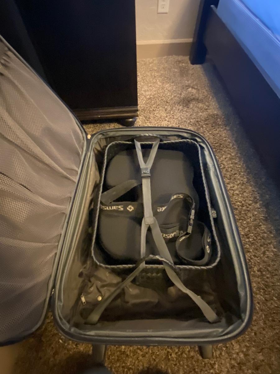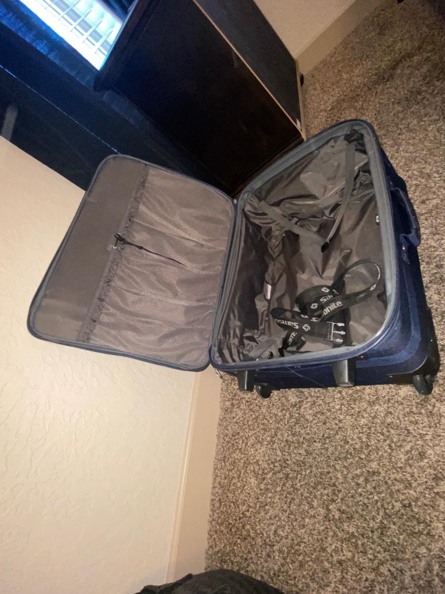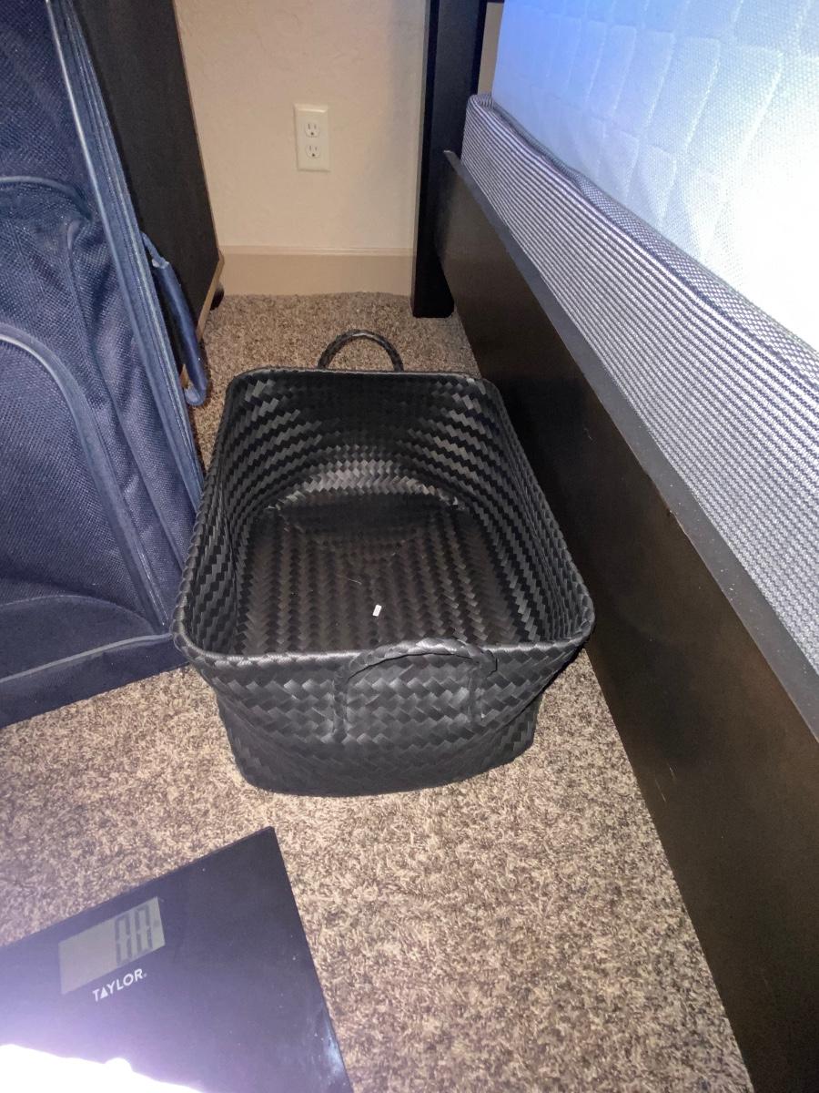 SAMSONITE SUITCASE, TAYLOR SCALE, SEAT CUSHIONS, WEAVED BASKET