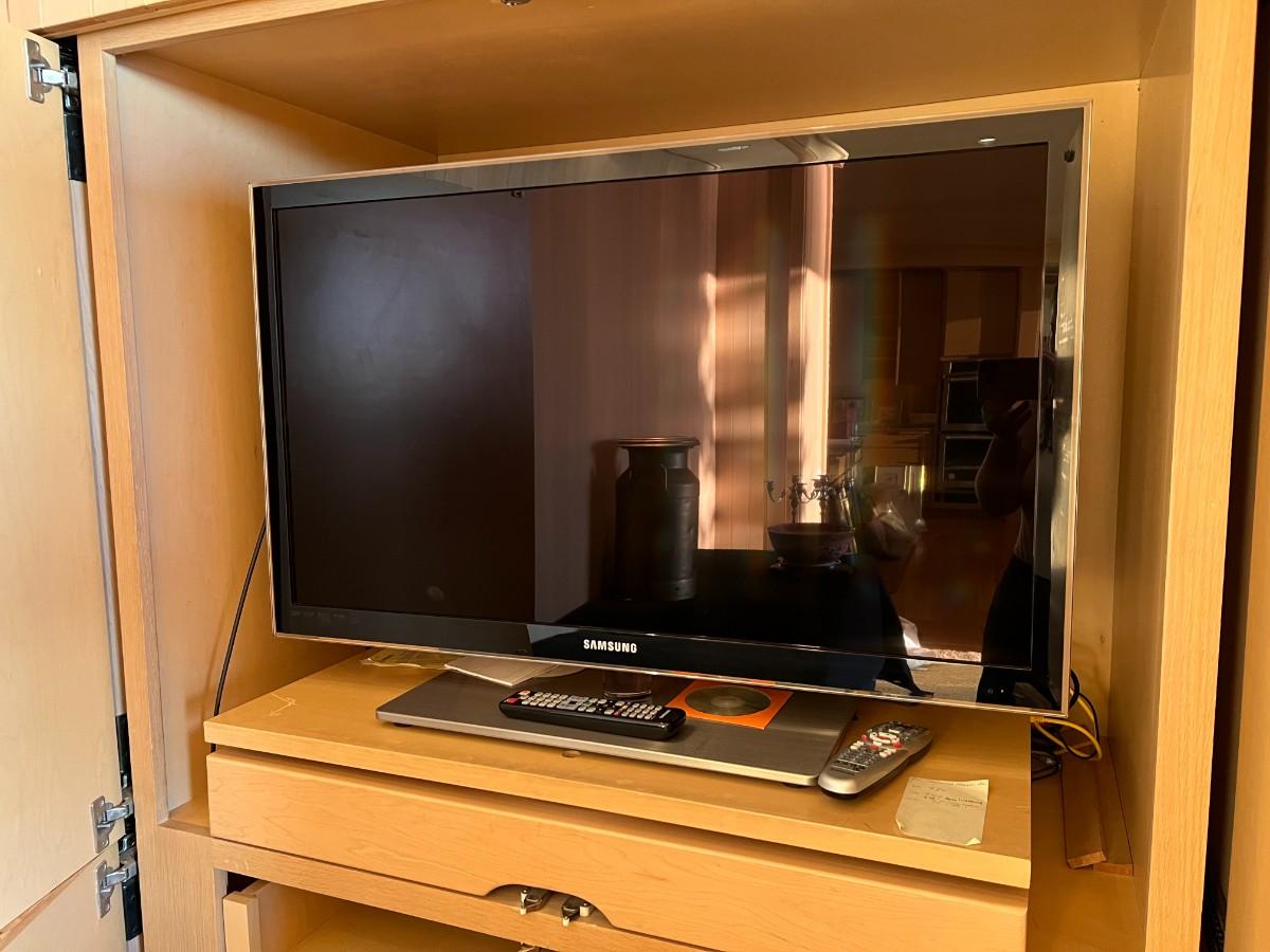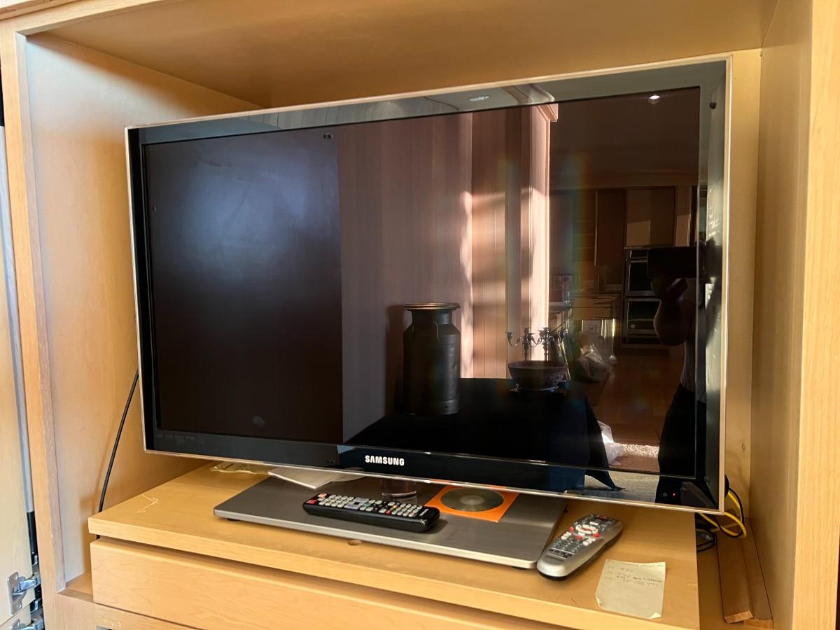 Samsung 1080p Full HD TV with Modern Clear Plexiglass or Plastic Stand