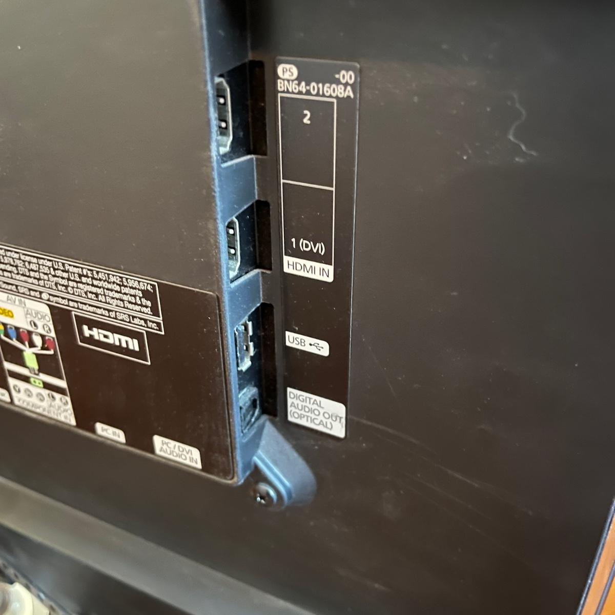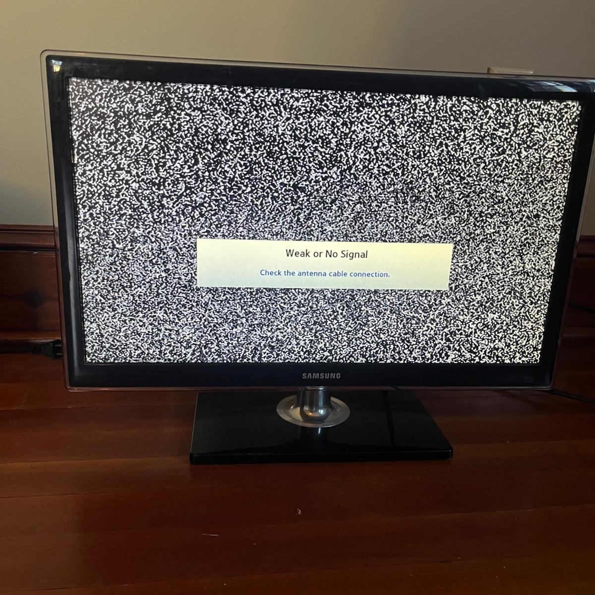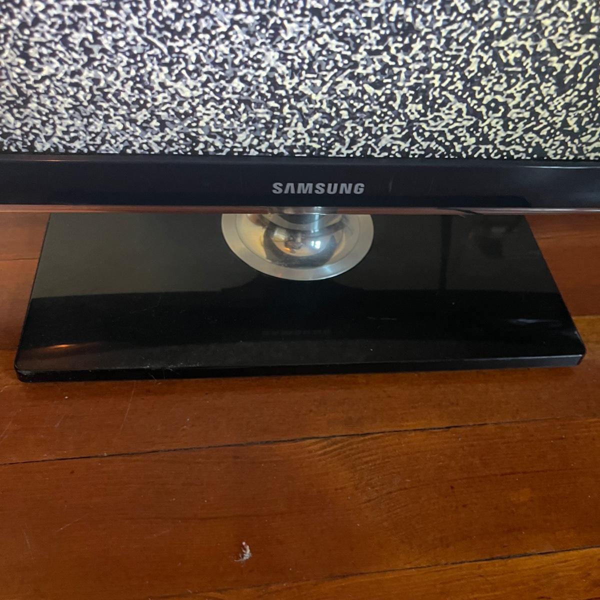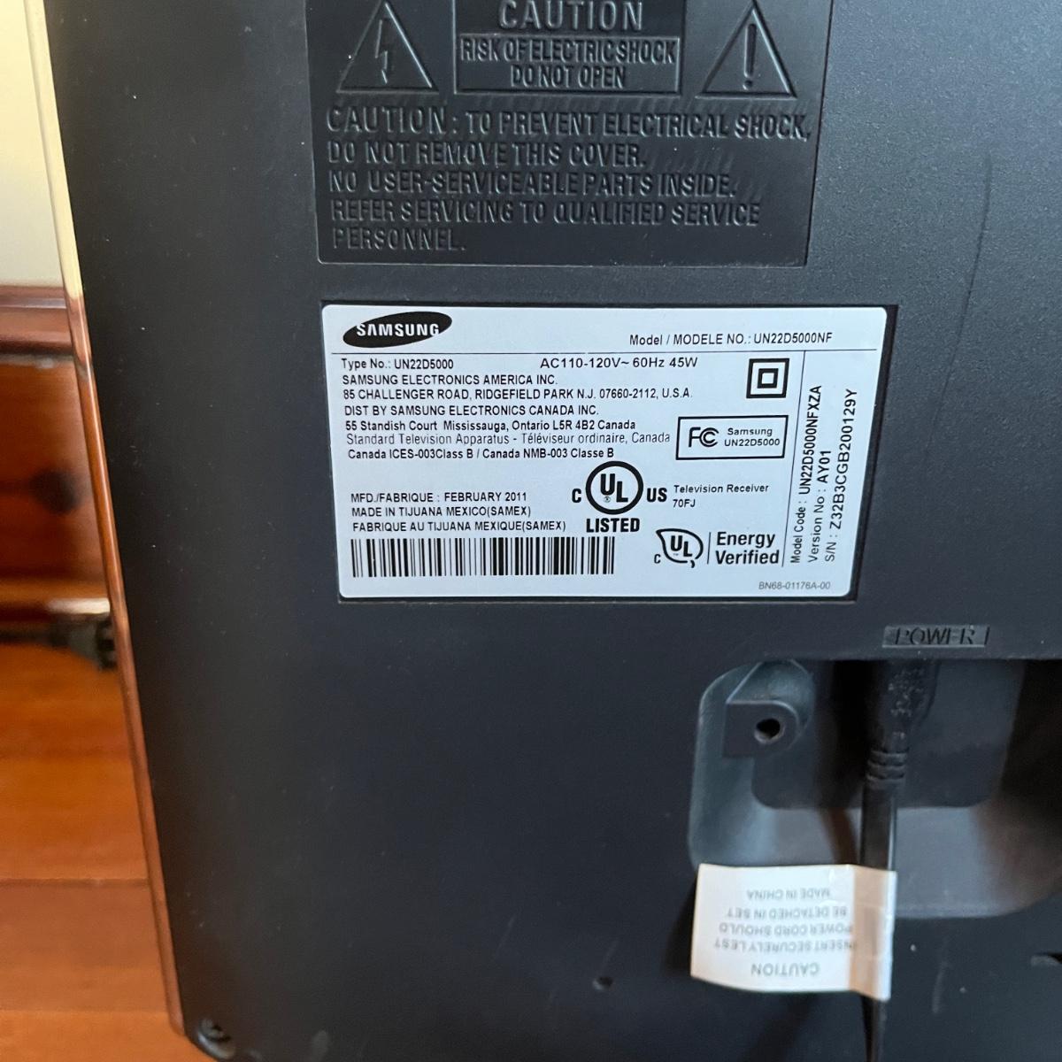 Lot includes a Samsung 22” TV with remote and a Samsung Infrared blaster. The blaster takes four AA batteries. The blaster was not tested. TV powered on when plugged in.