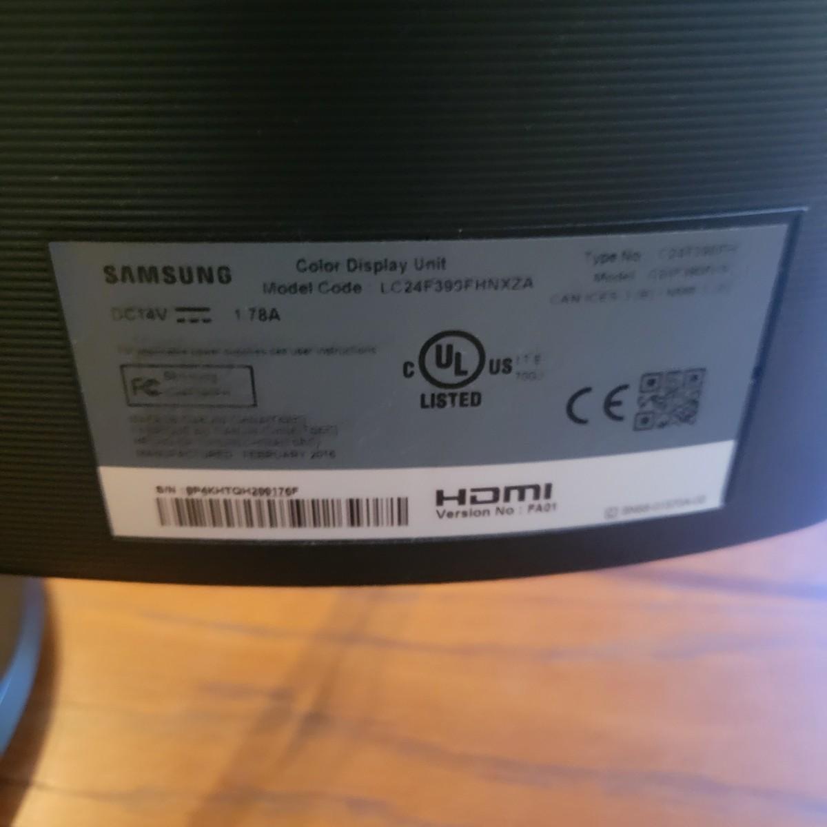 A 24" Samsung monitor that powered on when plugged in. This monitor has hdmi and RGB inputs.