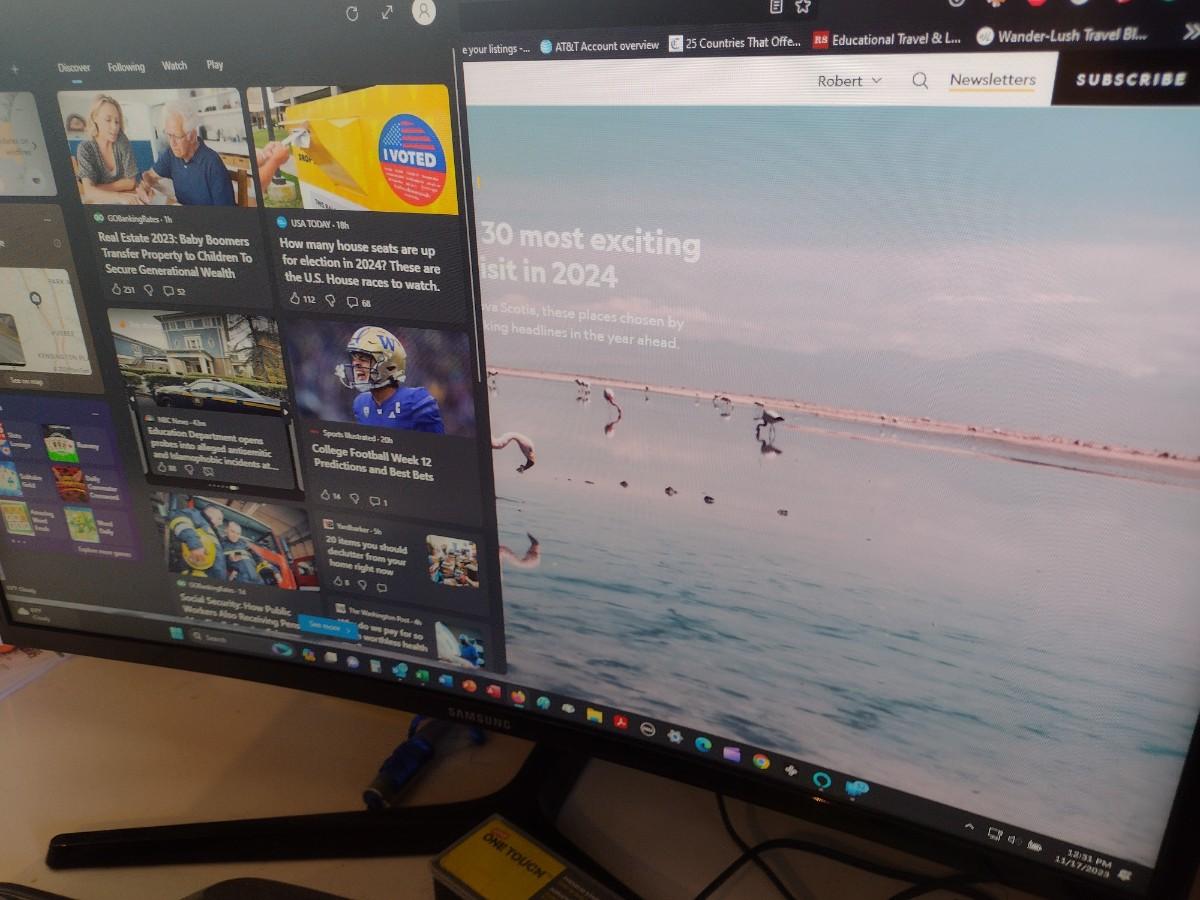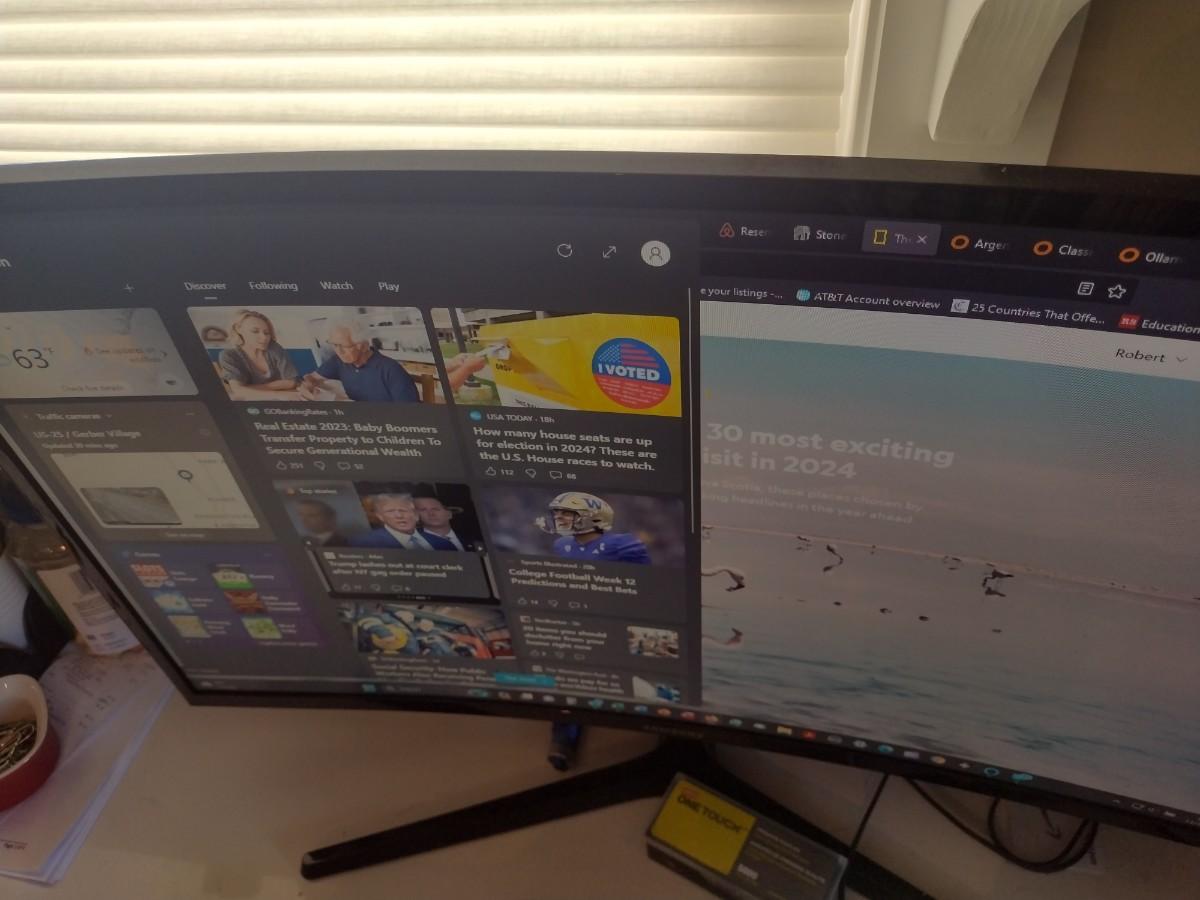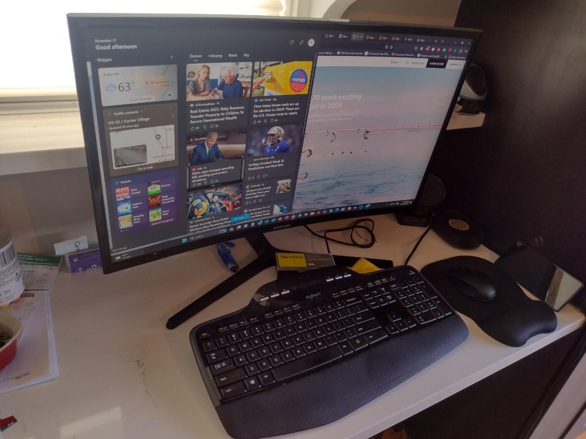 Samsung 27" Computer Moniter Curved Screen, Logitech Keyboard, Mouse, Speaker, and Mouse Mover