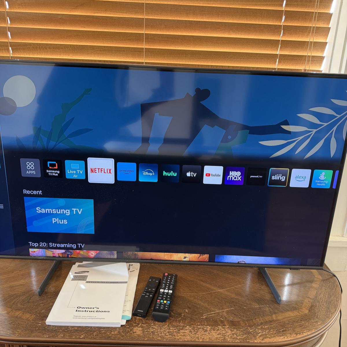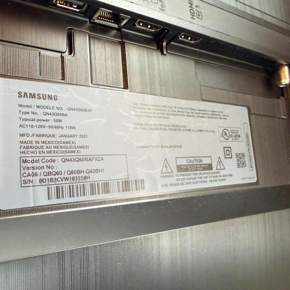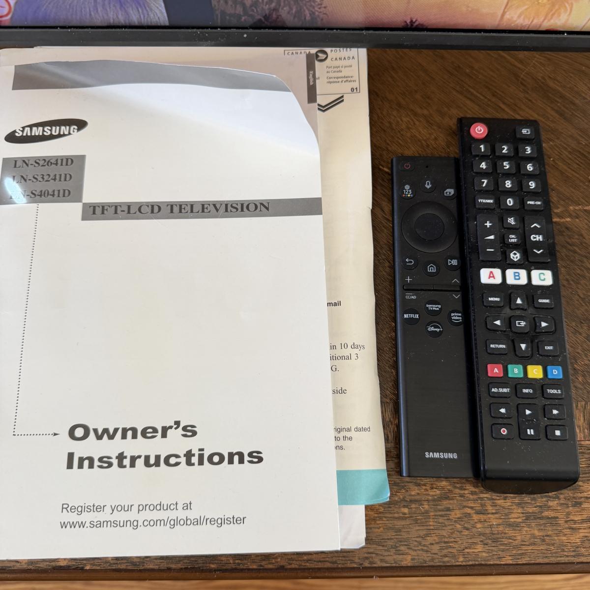 Lot includes a Samsung smart TV with remotes. TV measures 38” x 7” x 24”H.