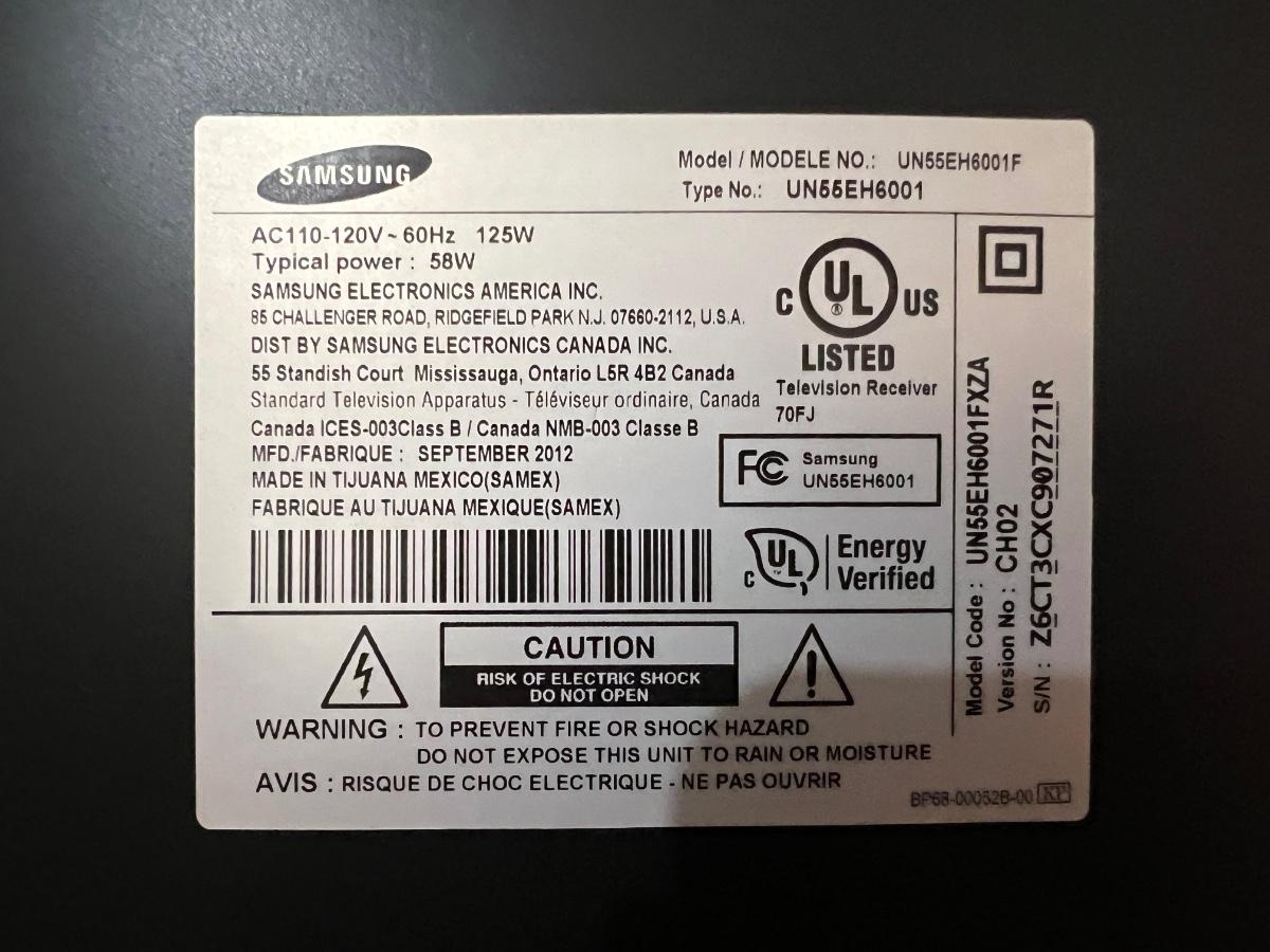 55” Samsung LED TV. Works as it should. Model: UN55EH6001F. Comes with original remote.