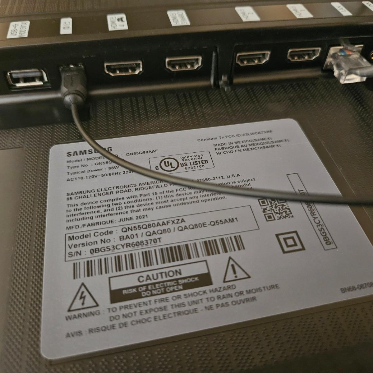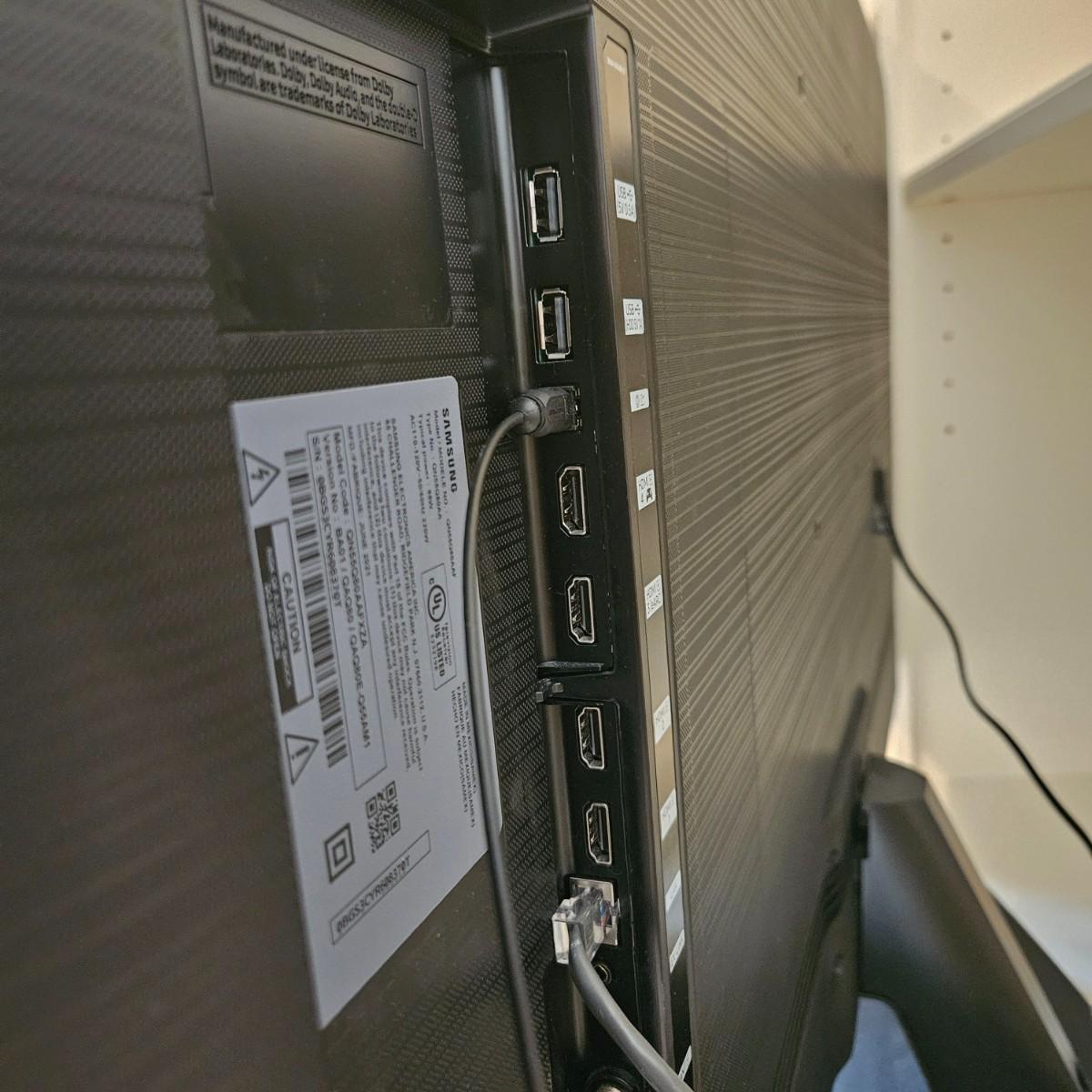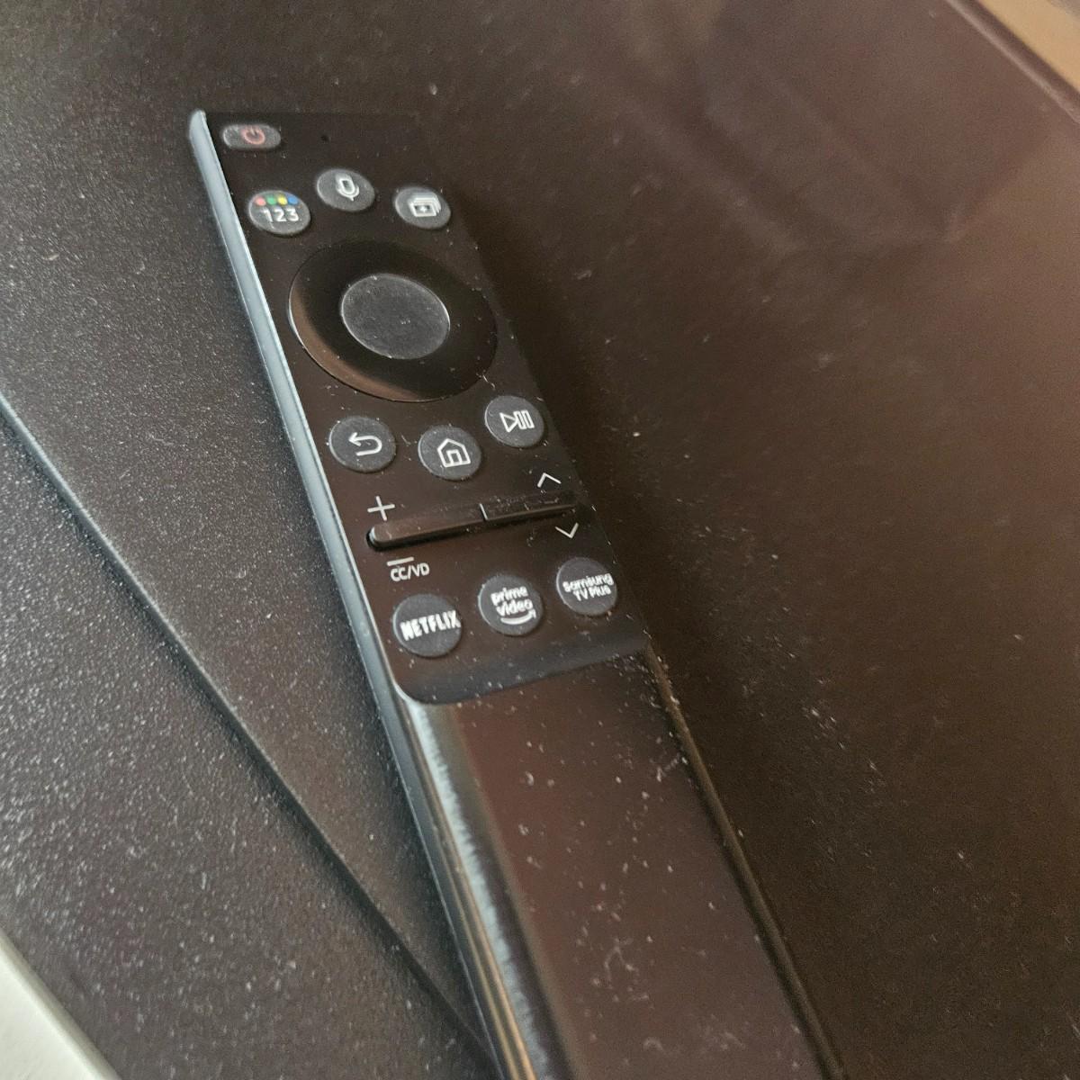 A Samsung 55" smart TV with remote that powered on when plugged in. The Bose sound box that is in the pictures is not included in this lot, but is for sale separately in this auction. Local pickup only
