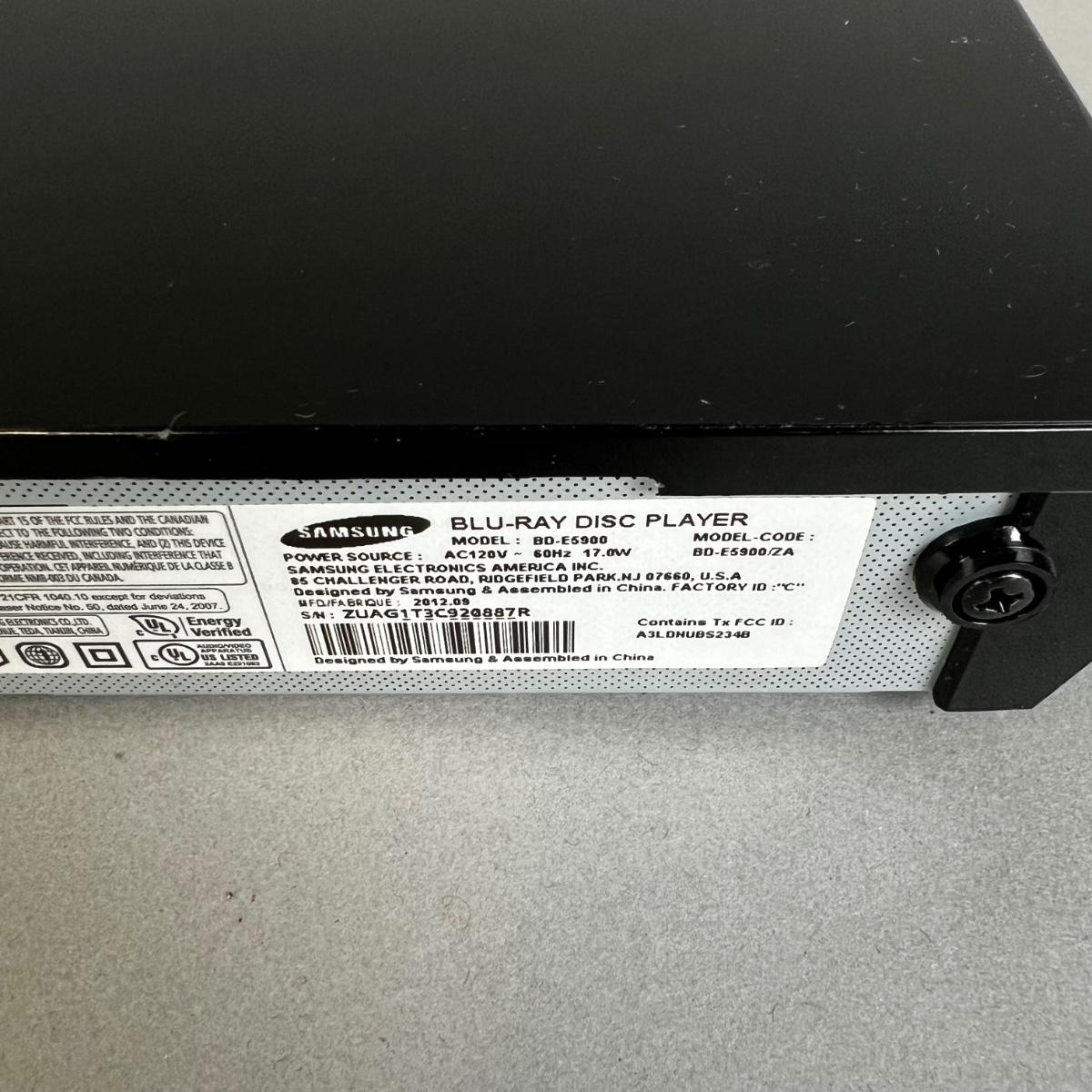 Samsung BD-E5900 Blu-Ray 3D Disc Player. This disc player does not come with remote. 1.5”H x 14”W x 7.75”D