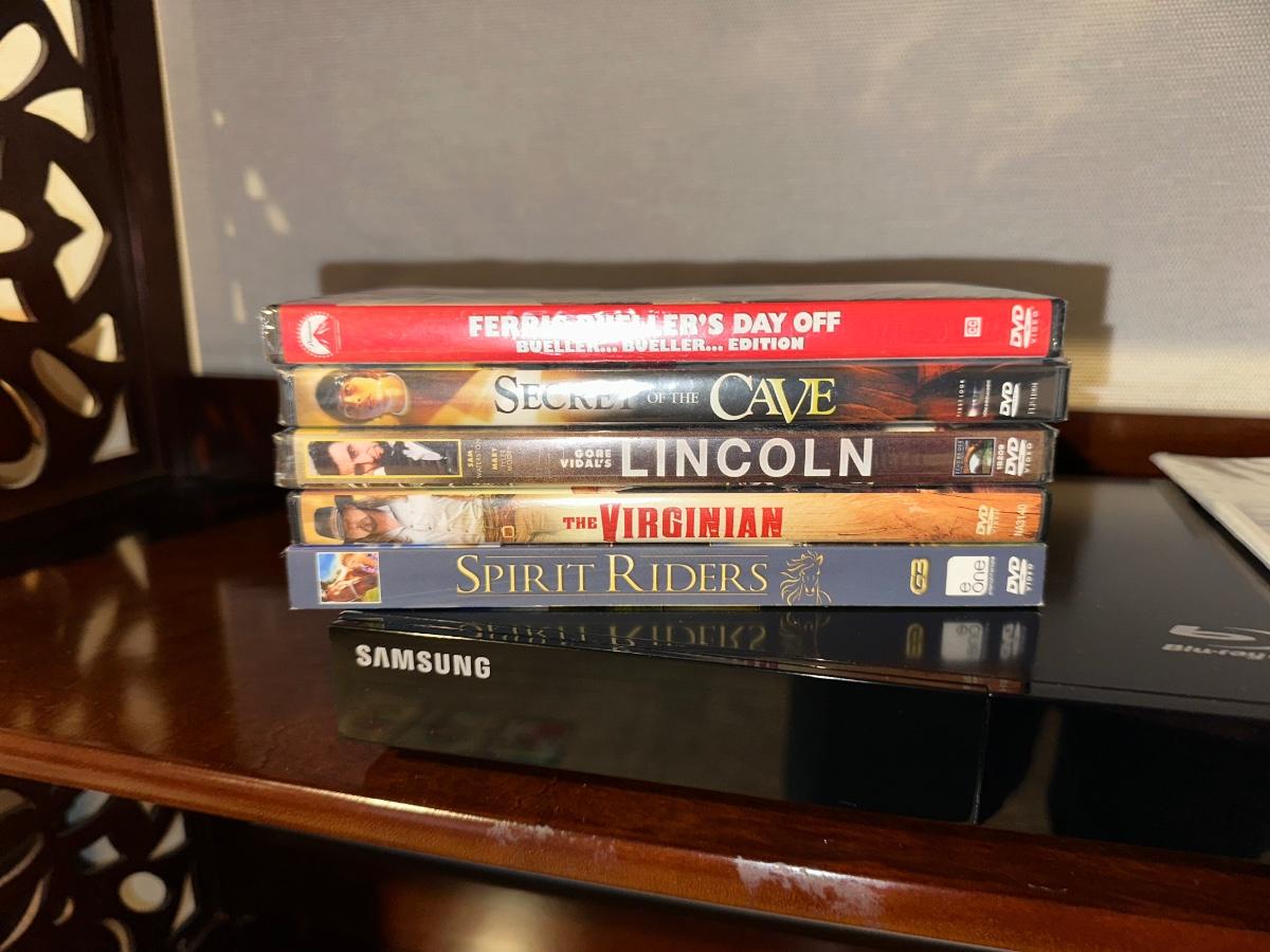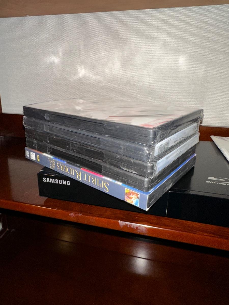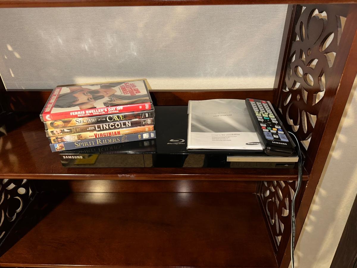 SAMSUNG BLU RAY DISC PLAYER W/REMOTE AND SOME MOVIES ON DVD