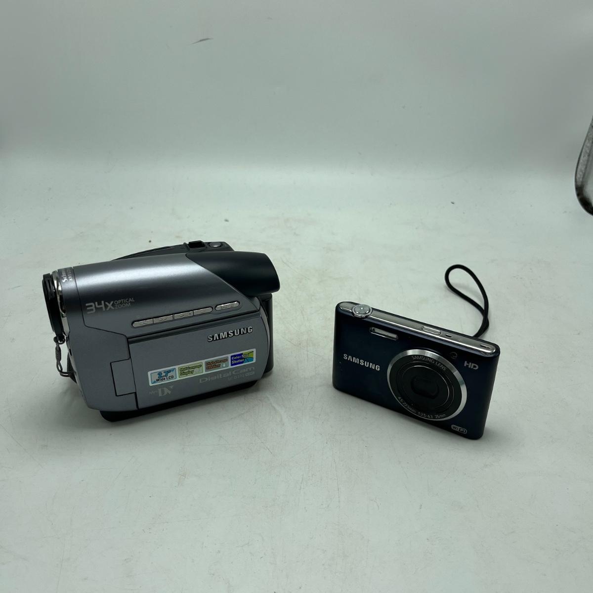 Lot includes a Samsung digital camcorder model # SC-D372 and a Samsung digital camera model # ST-150F that powered on when tested. Camcorder was not tested as batteries are dead and no charger is included.