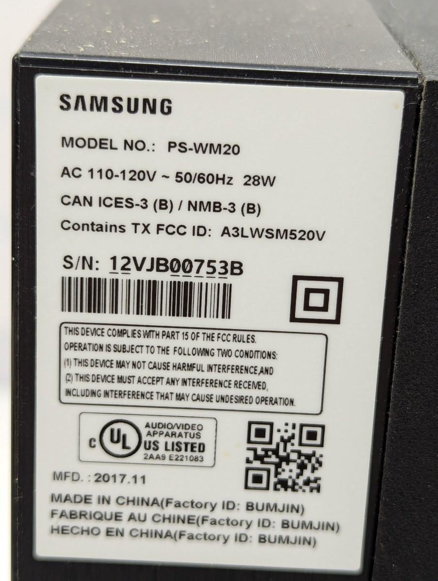 Samsung Dolby Sound Bar & Speaker Model PS-WM20