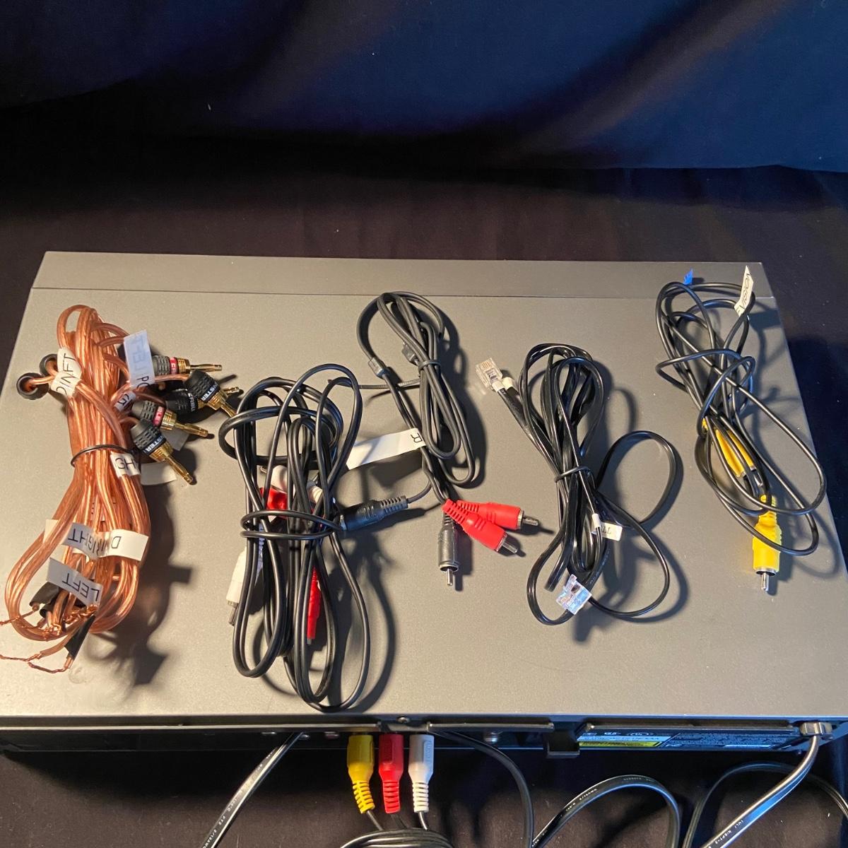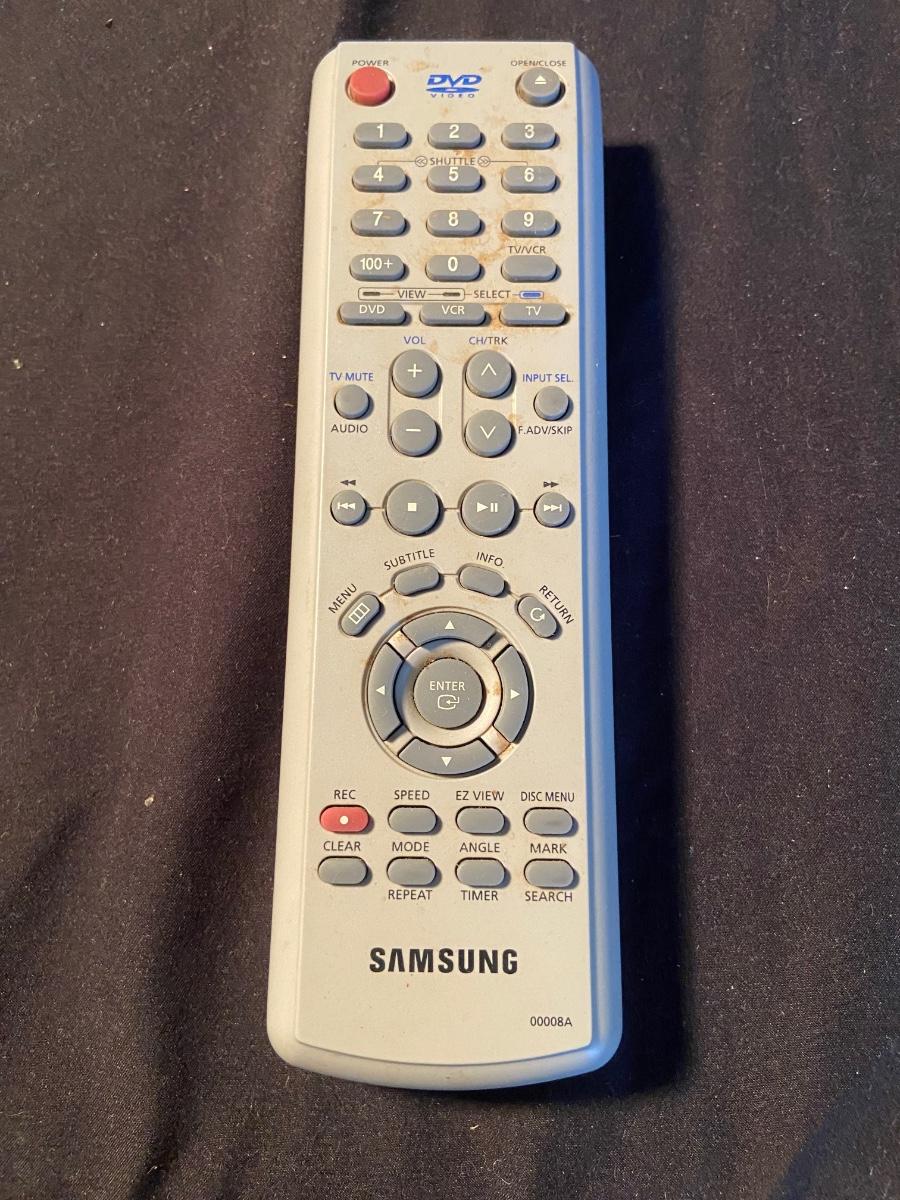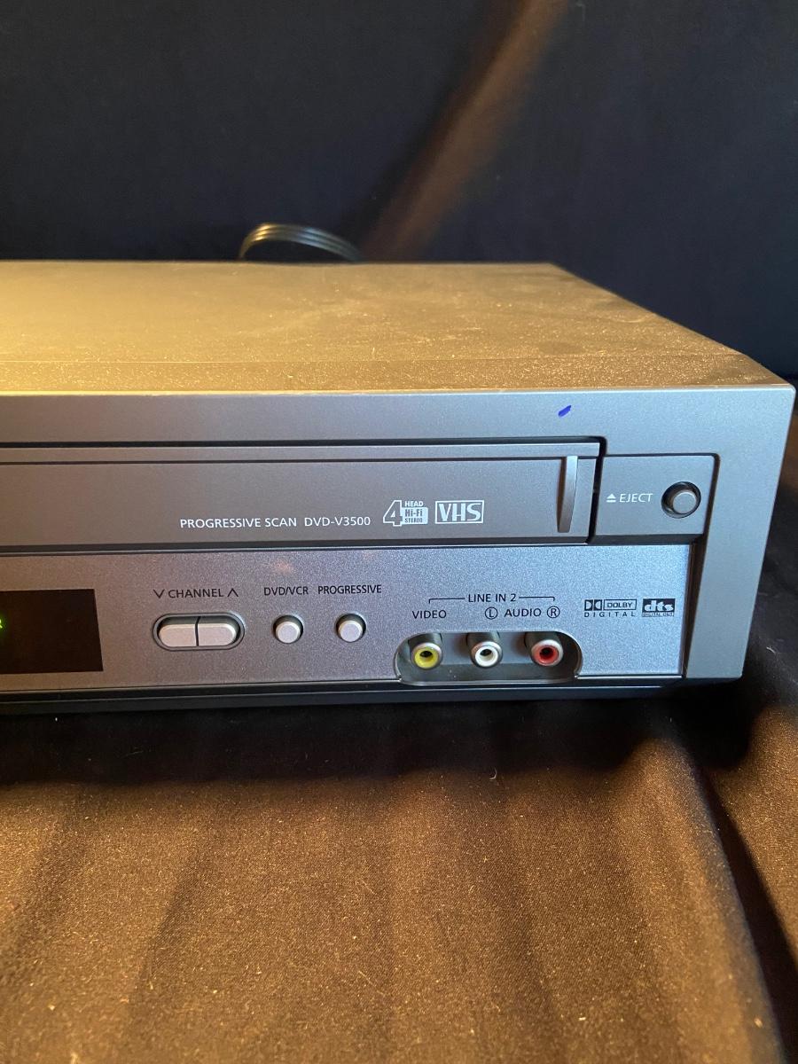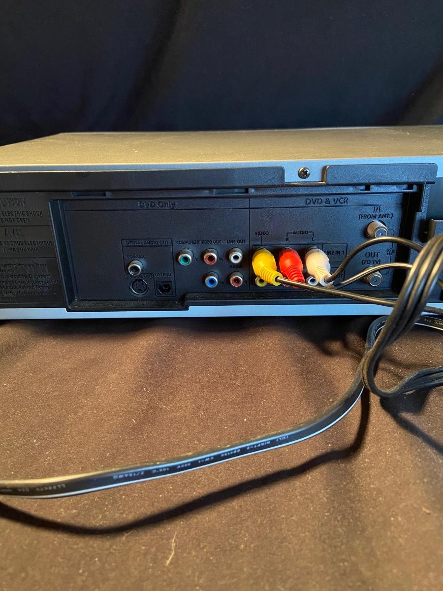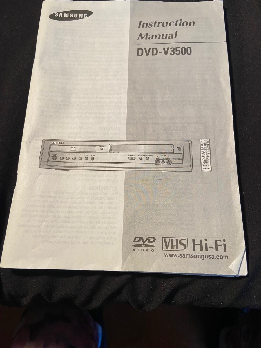 Samsung dual DVD and VHS player. It comes with its remote, instruction manual and various cables to connect to TV and speakers. Powered on when plugged in. It measures 17” x 10.5” x 3.75”H. See pictures for model number. Shipping available.