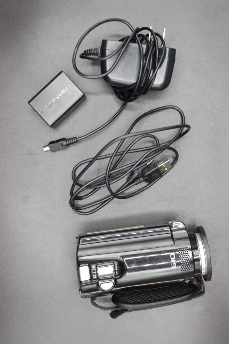 Samsung H200 Full HD Camcorder, there is no significant damage to the body and is in good useable condition. Comes with power chord, USB, and a London Fog carrying case for the cam camcorder. Powers on and functions perfectly, check pictures for more details and for sizing.