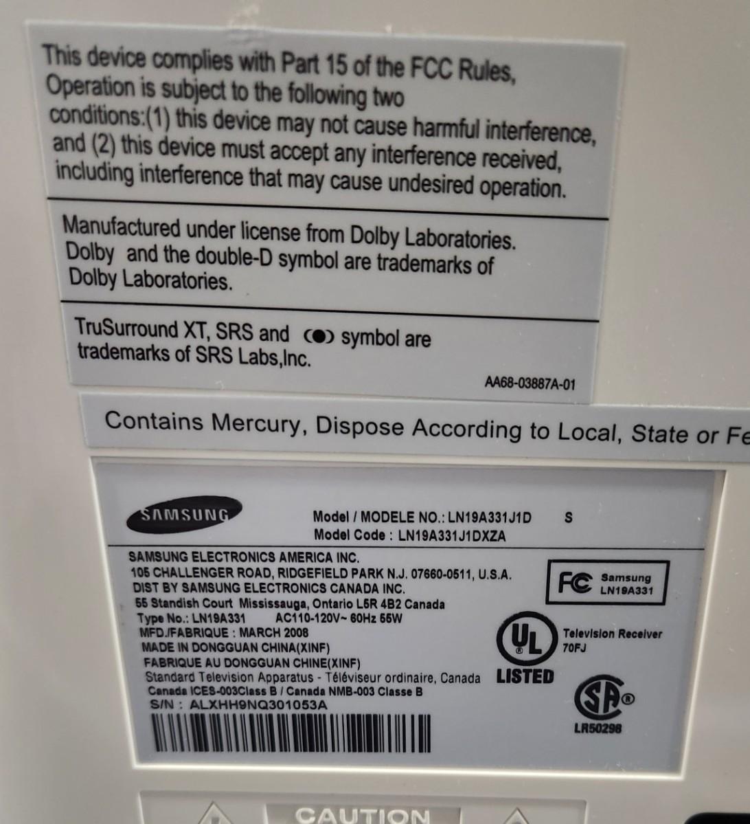 Samsung LN19A311 TV 19" Monitor / TV w/ remote