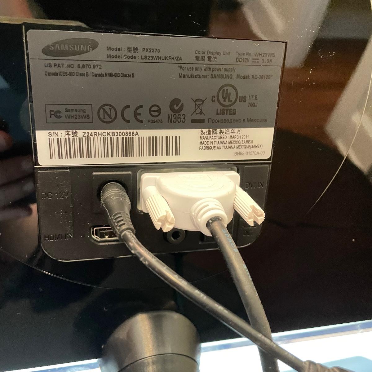 Samsung model PX2370 monitor with HDMI cable. Monitor turned on when connected to power. Local pick up only.