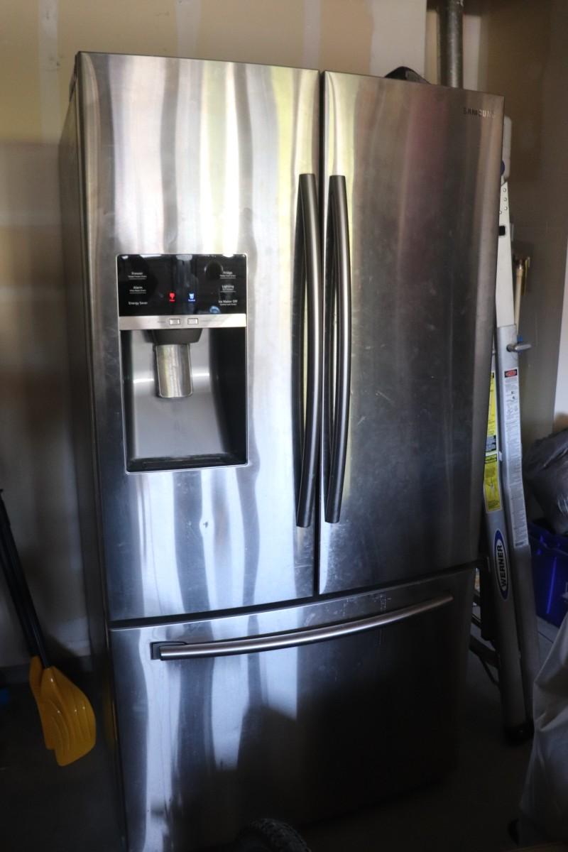 LESS THAN A YEAR OLD!! French Door Refrigerator: A spacious and modern French door refrigerator with a generous 25.6 cu. ft. capacity, featuring adjustable shelving, a water and ice dispenser, and energy-efficient cooling technology. Perfect for keeping your food fresh and organized in style.