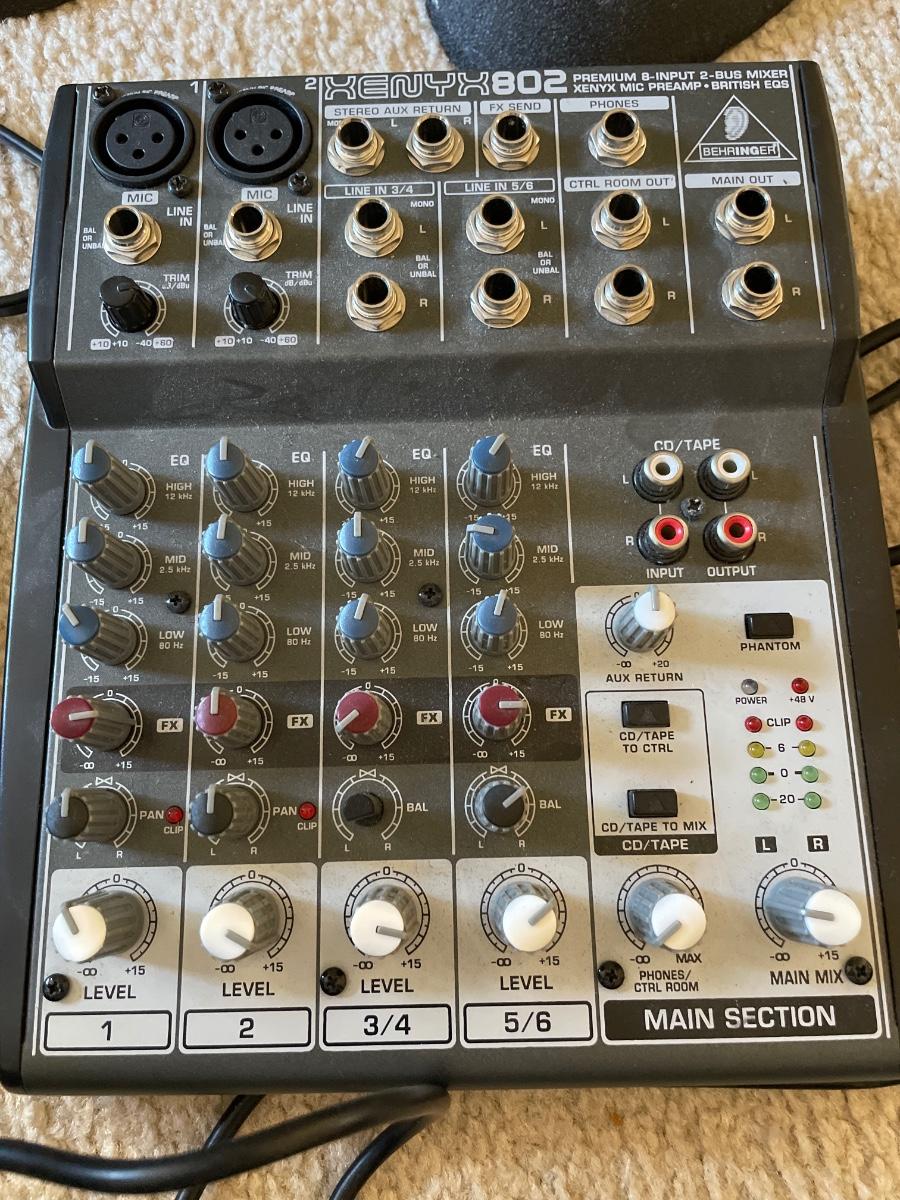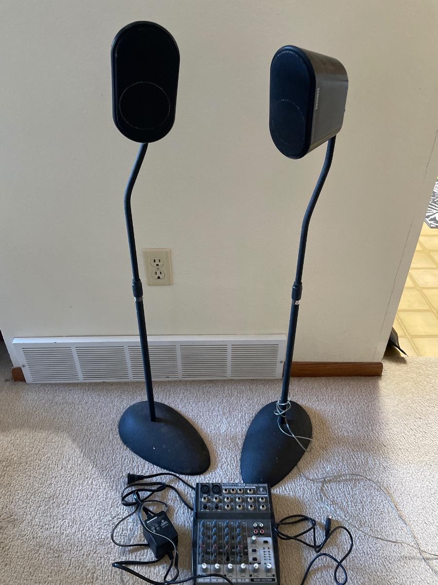 Samsung speakers and Behringer 802 mixer