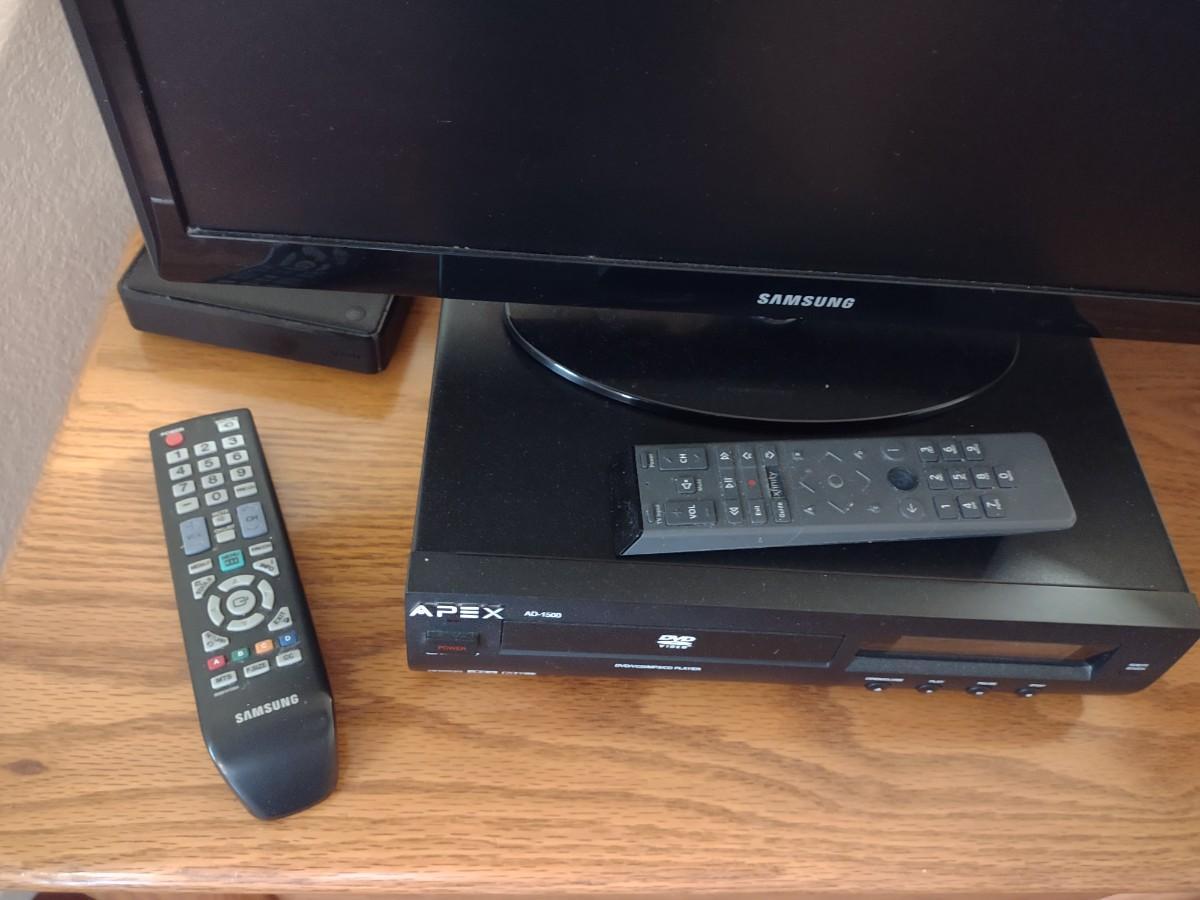SAMSUNG 22" TV AND APEX DVD PLAYER BOTH HAVE REMOTES