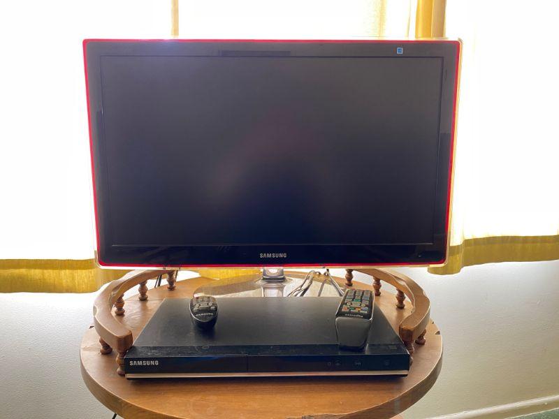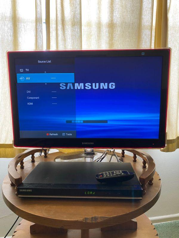 Samsung flat screen TV and DVD player. TV works great. Model #P2770HD. Great for small TV or PC monitor. Unsure about DVD player. It does come on, shows a loading screen and seems to be working, but DVD in player never actually came on and it makes alot of noise. Both have remotes.