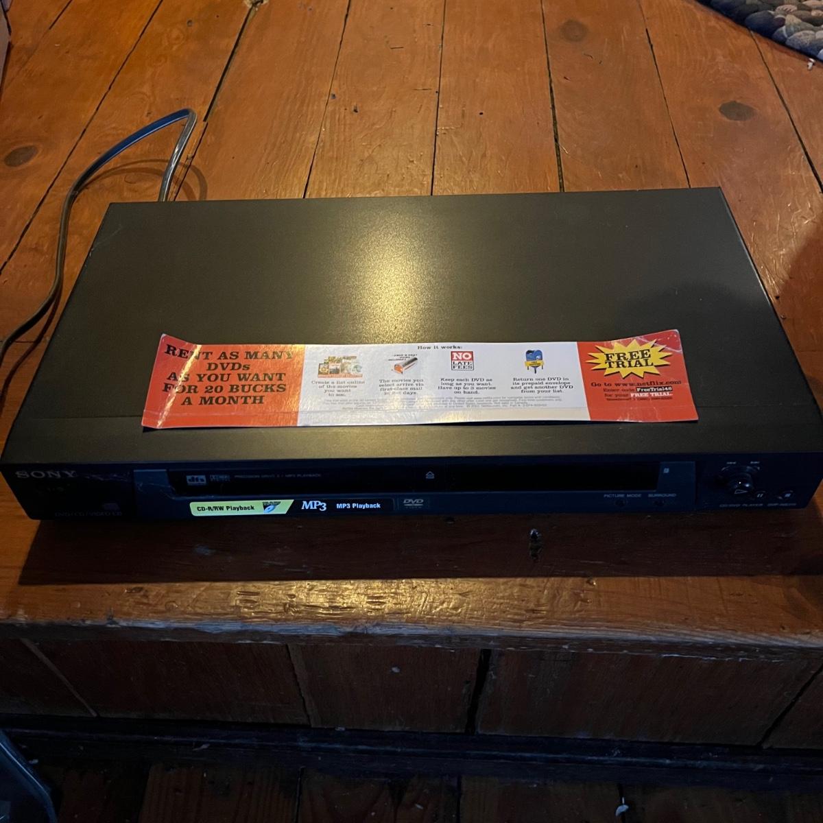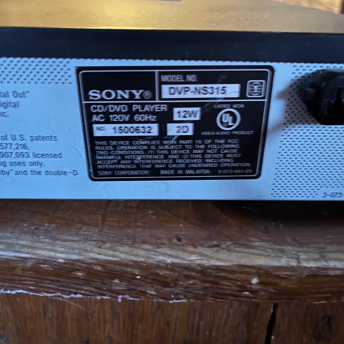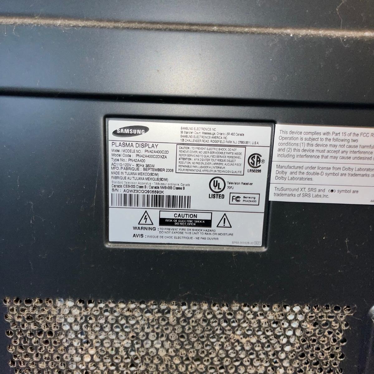 Samsung 42” Plasma TV model # PN42A400C2D with remote and a Sony DVD player model # DVP-NS315 with remote. Both machines powered on when tested. TV has wall mount attached and does not have a stand.