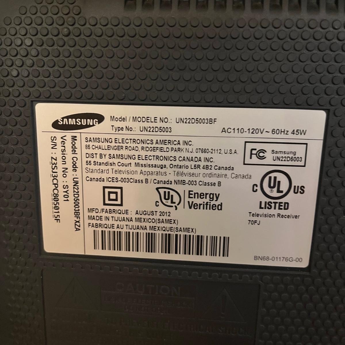Lot includes a Samsung 22” Flat screen TV model # UN22D5003BF with remote and a Sony DVD player model # DVP-NS5P and a Amazon Firestick with remote. TV and DVD player powered on when tested. Firestick appears to need batteries for remote so was not tested.