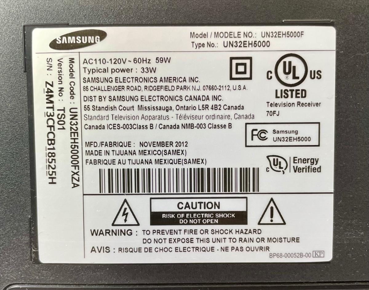 Model UN32EH5000F. Made in Mexico in November 2012. Excellent picture quality. Tested to confirm remote functions, see photos.