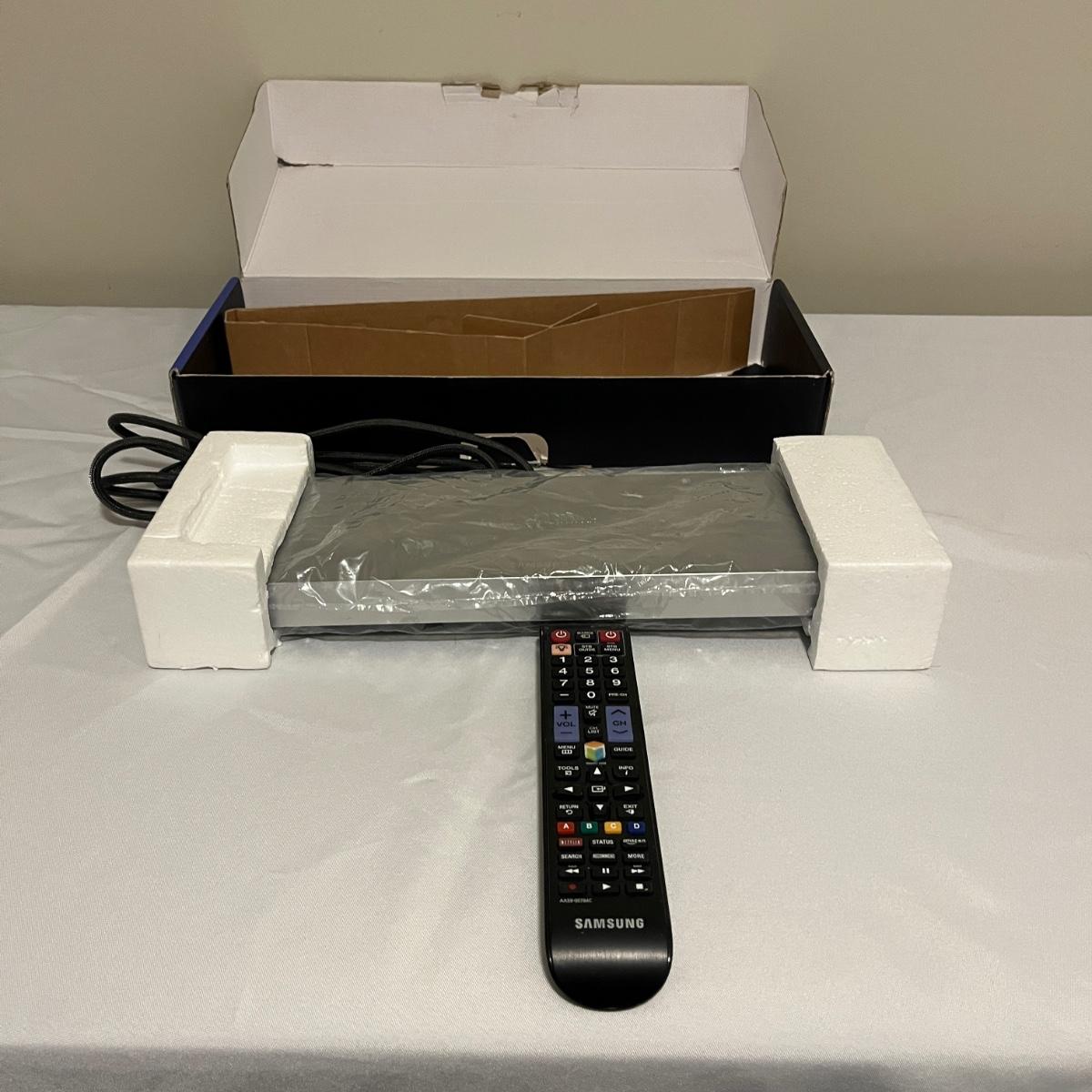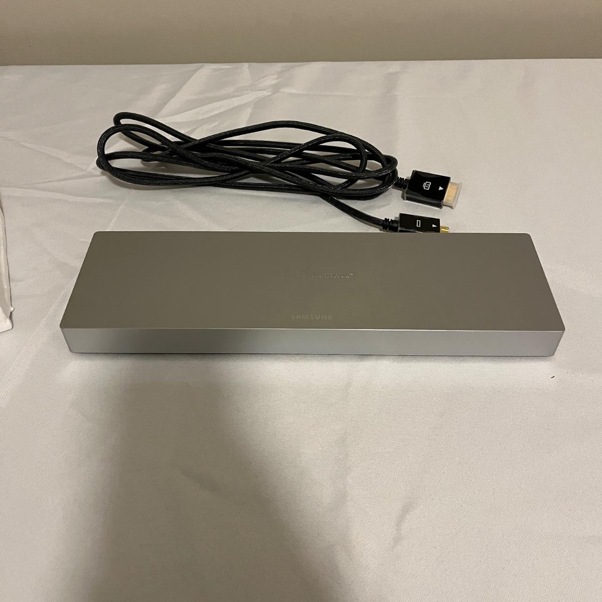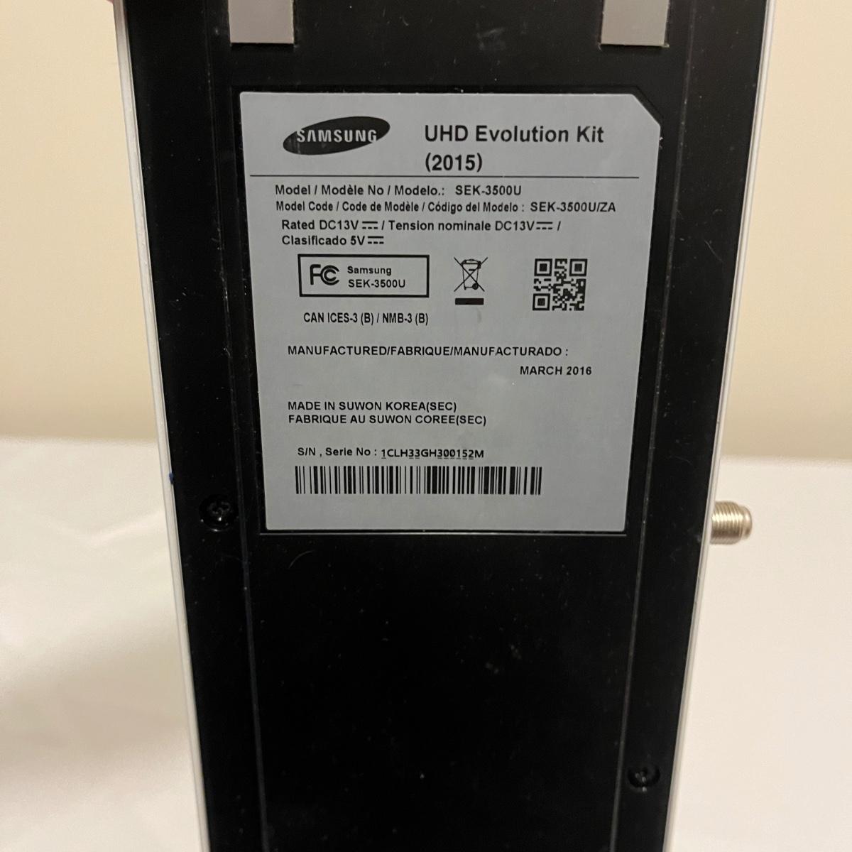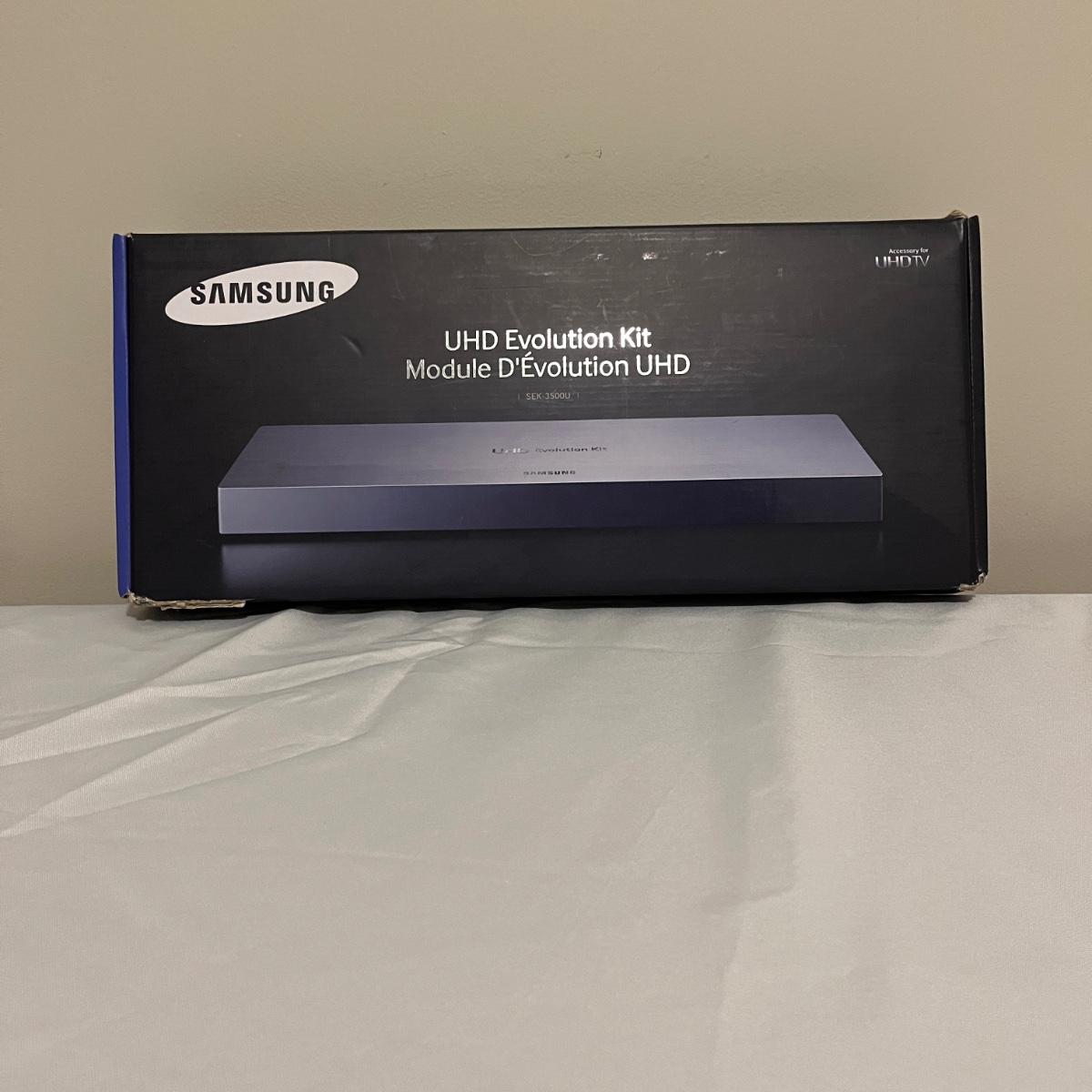 Lot includes a Samsung UHD Evolution Kit. Item measures 14” x 4” x 1”H and includes remote and cable. Items were not tested.
