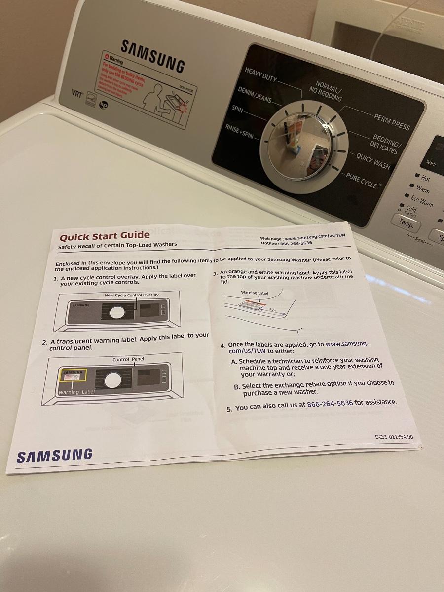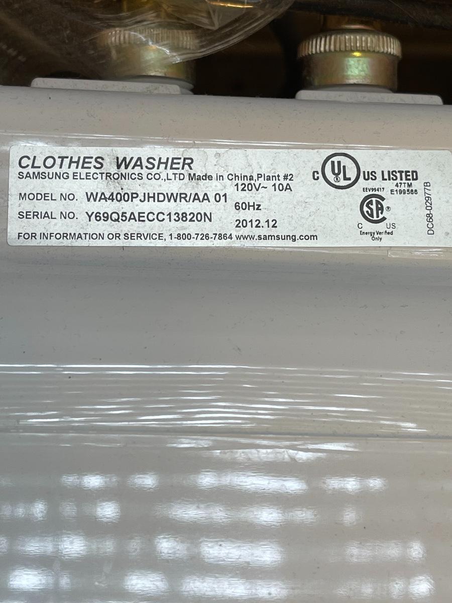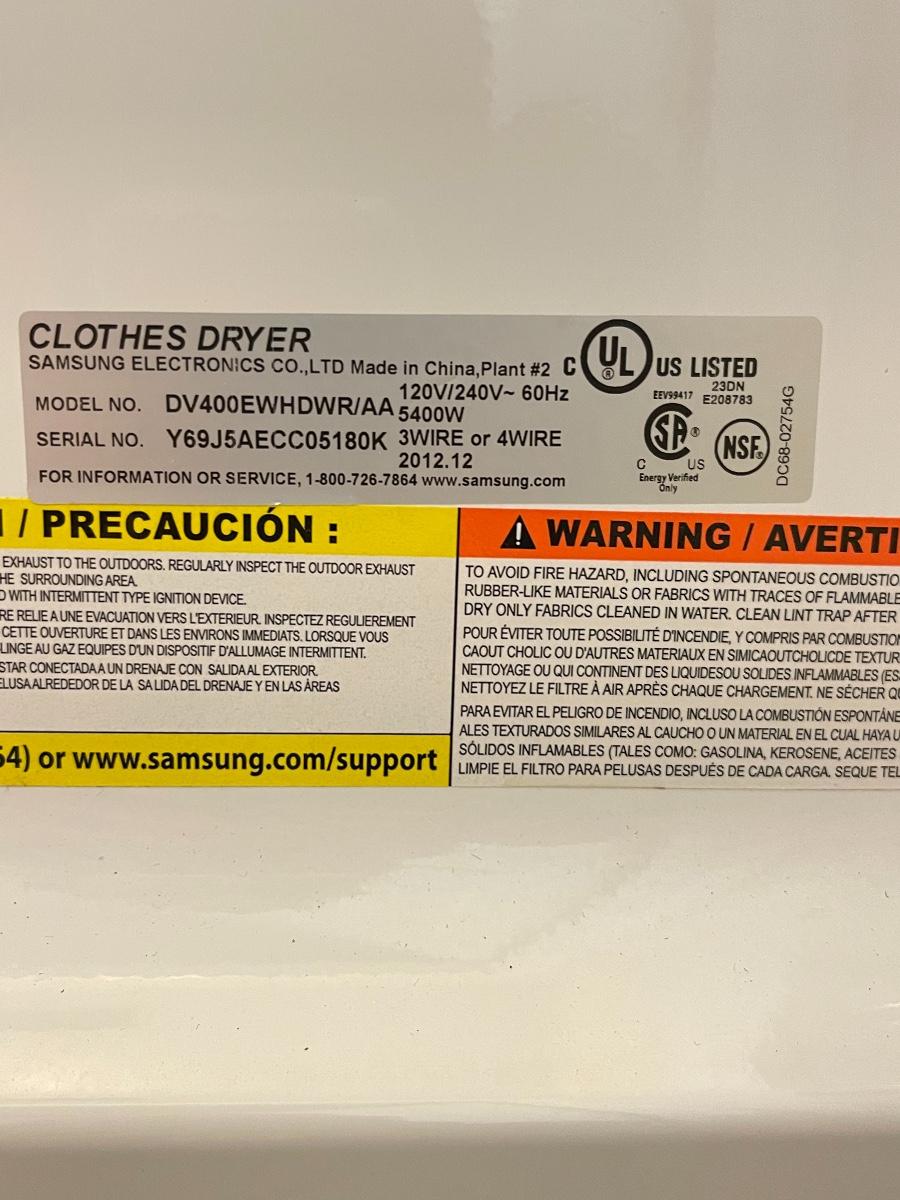 Samsung HE energy star washer and Samsung Moisture Sensor Electric Dryer. Includes user manual for Dryer and Quick start Guide for washer. 2012.12