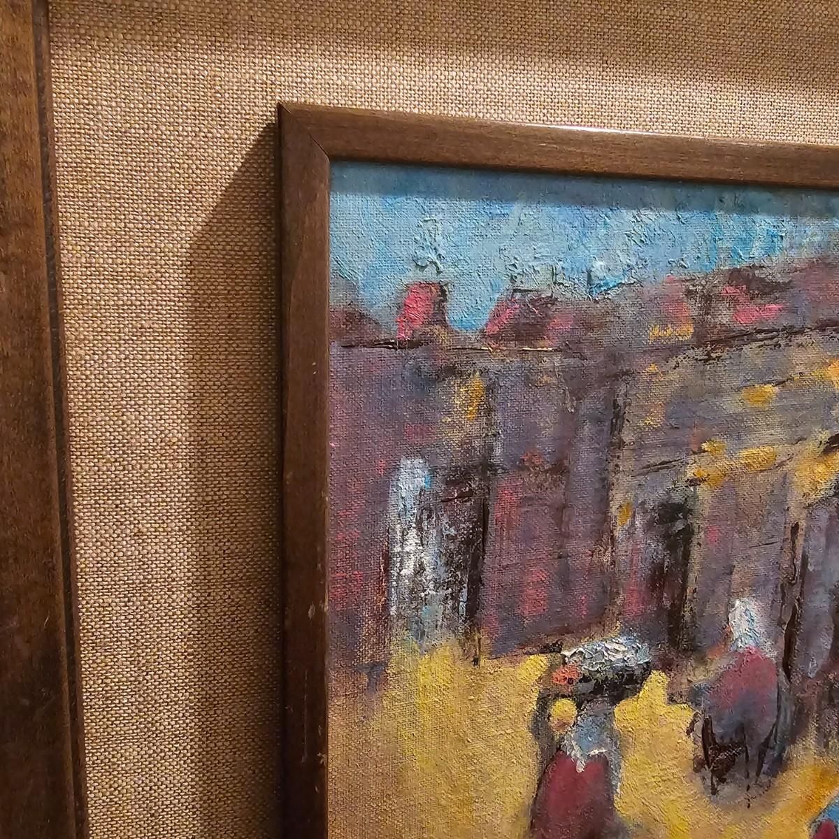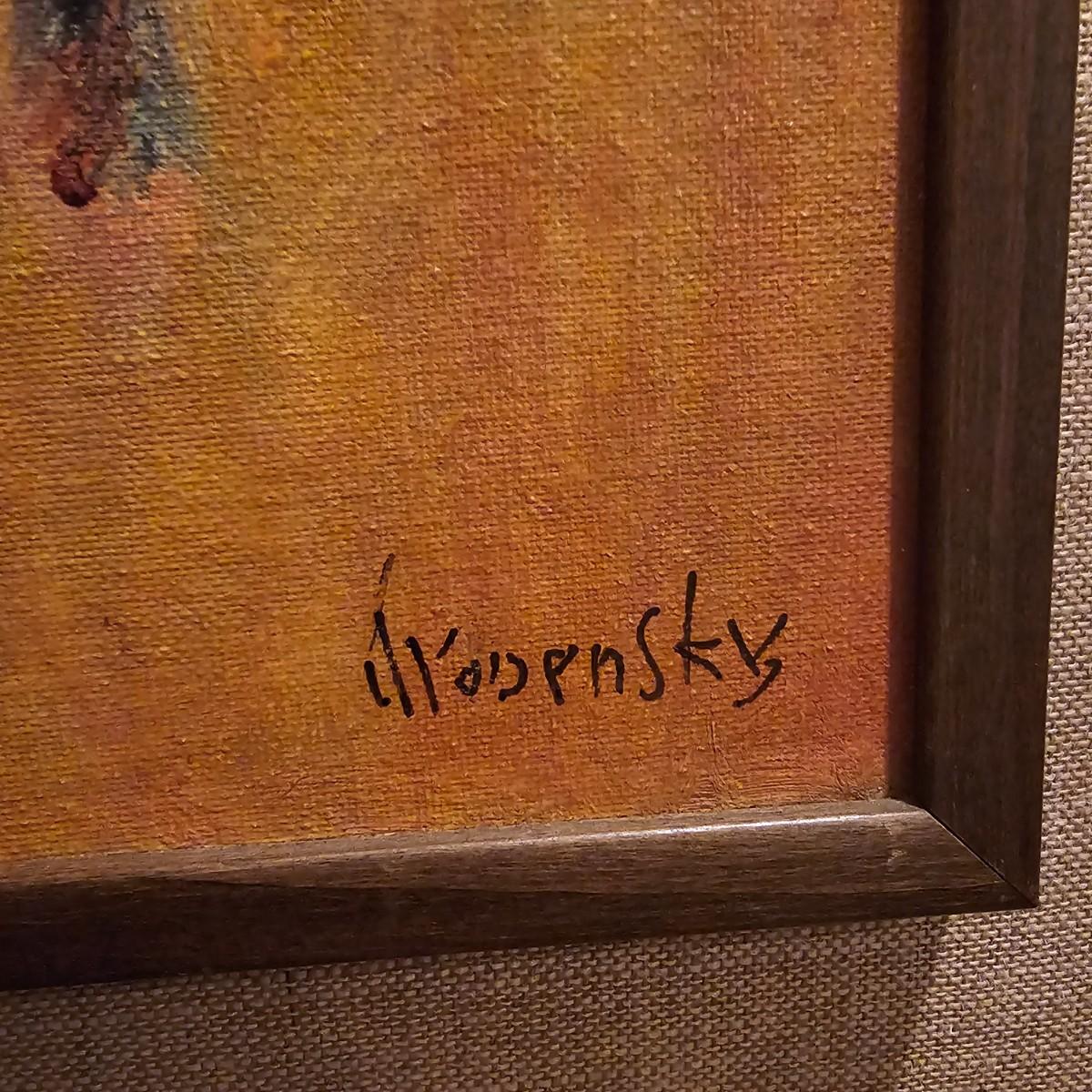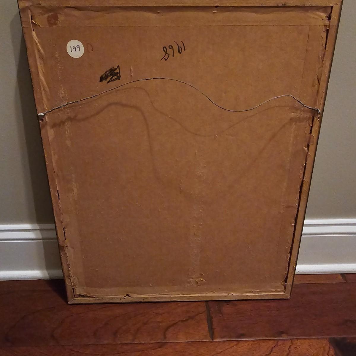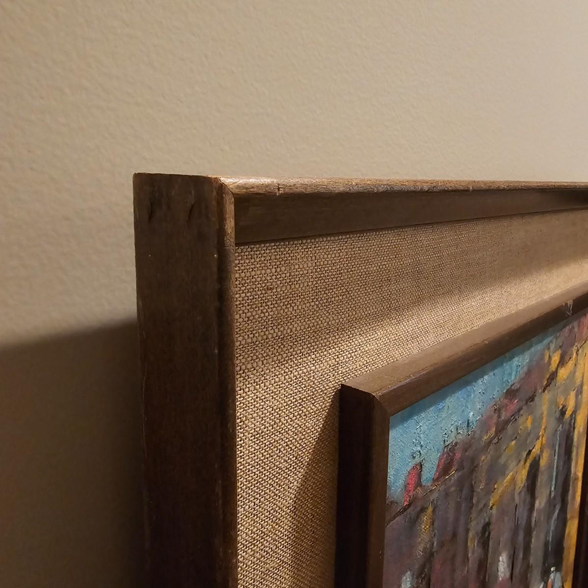 This art appears to be an impressionist oil painting by Samuel Grodensky in his signature style. Many of his works were based on his Jewish background and memories growing up in New York. The painting measures 18" x 22", has a date in marker on the back of 1968. Wood frame has cloth inner background. See photos for details. Shipping available. Shipping can be costly. We suggest contacting our preferred local shipping provider, Postage Express, with dimensions and getting an estimate before bidding: (828) 255-9250 or shipping@postageexpressnc.com.