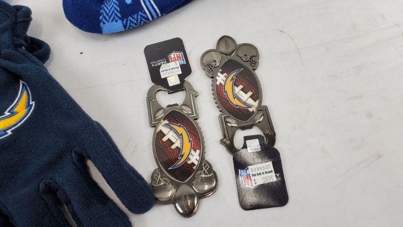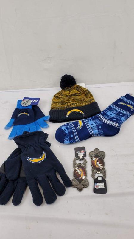 San Diego Chargers Lot, Gloves, Hat, Socks, and Bottle Openers/Magnets - New