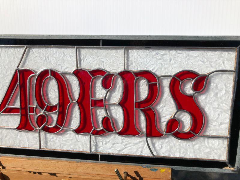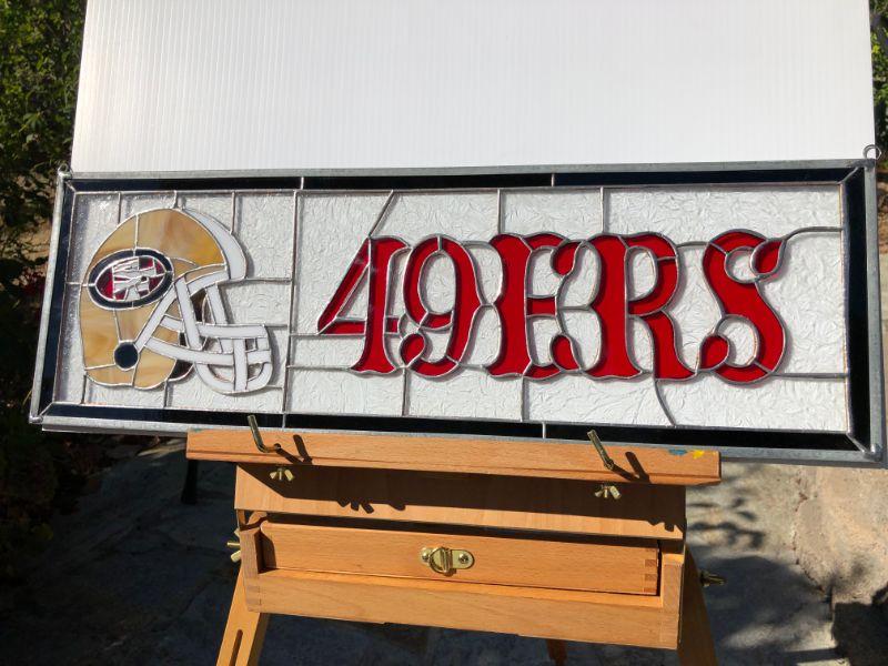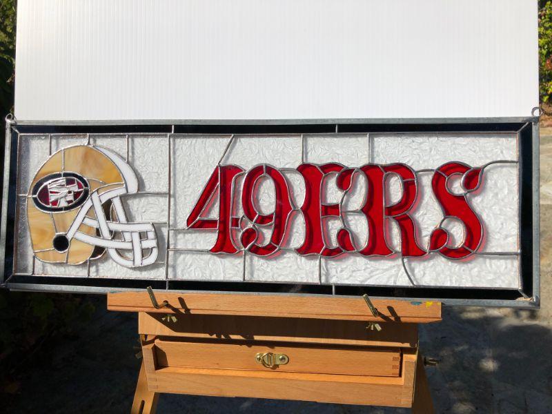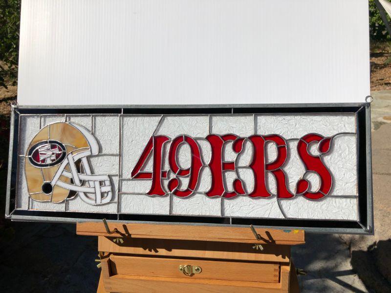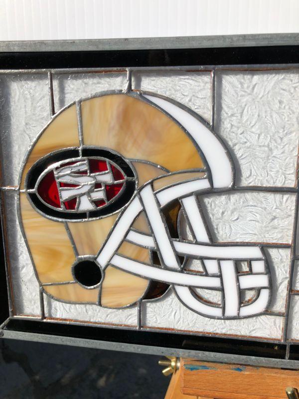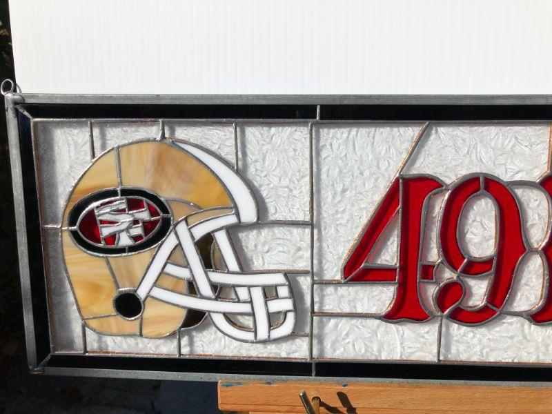 49ers Fan?? Fantastic San Francisco 49ers football stained glass window, featuring a SF helmet and the name 49ERS.