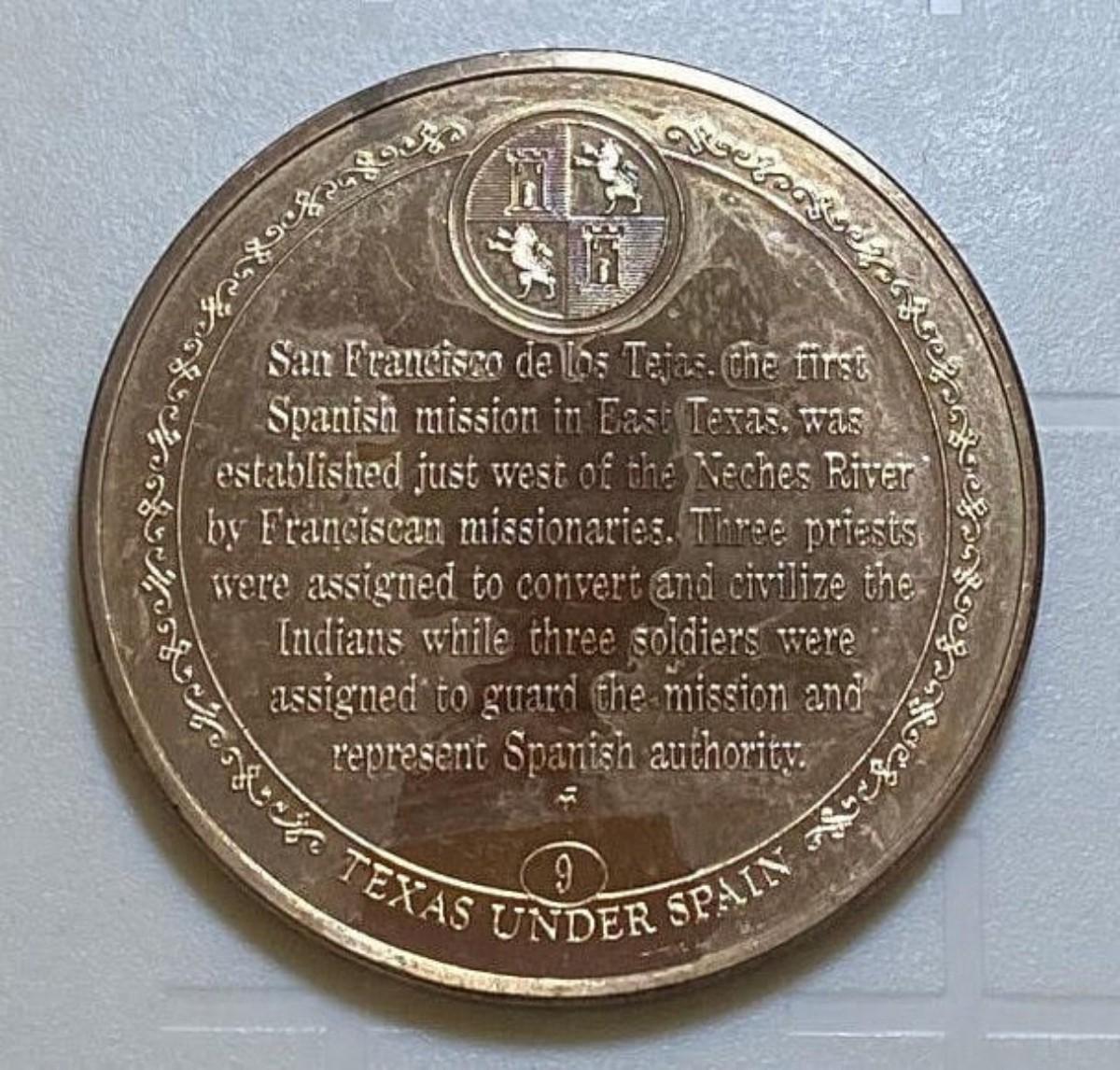 San Francisco De Los Tejas Mission Founded 1690, Franklin Mint, Coin, Medal, Exonumia, Medallion, Numismatic, Token, Texas Texana, Spain