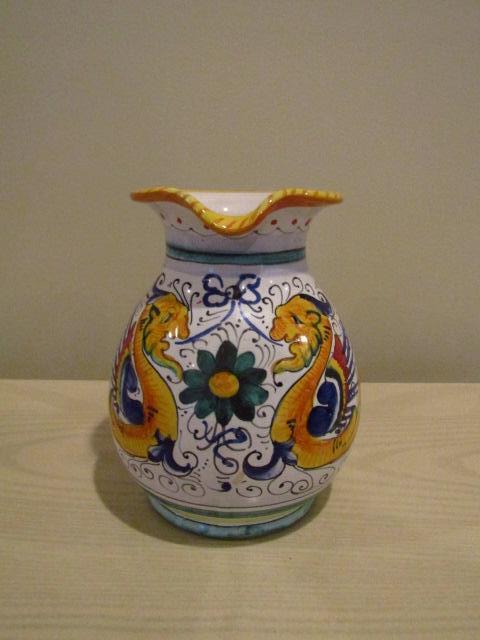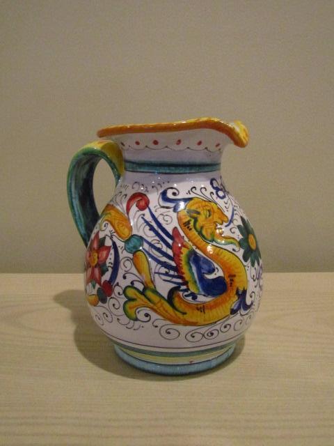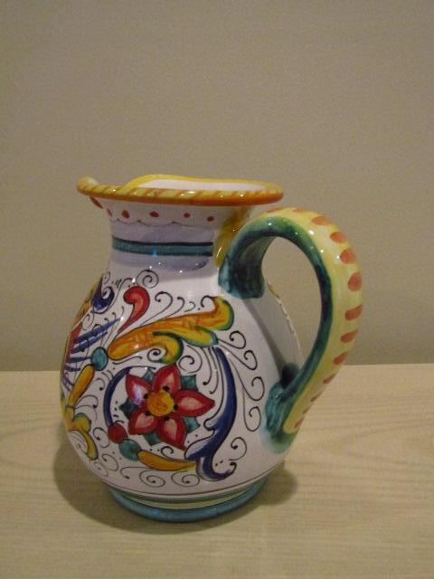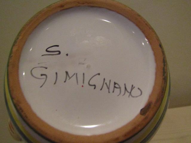 San Gimignano Hand Painted Pottery Pitcher- 5 1/2" Tall- Signed by Artist