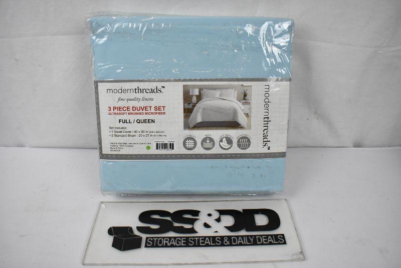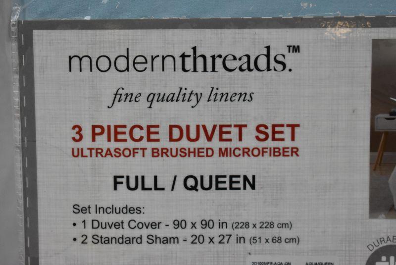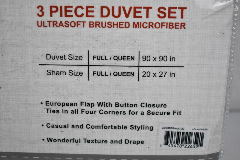Sanctuary 3 Piece Ultra-Plush Solid Duvet Set - Aqua Full/Queen - New