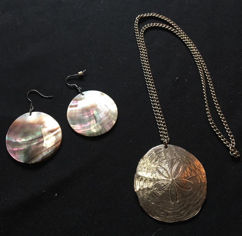 Sand Dollar Necklace with 24” Chain and Shell Earrings LOT 19