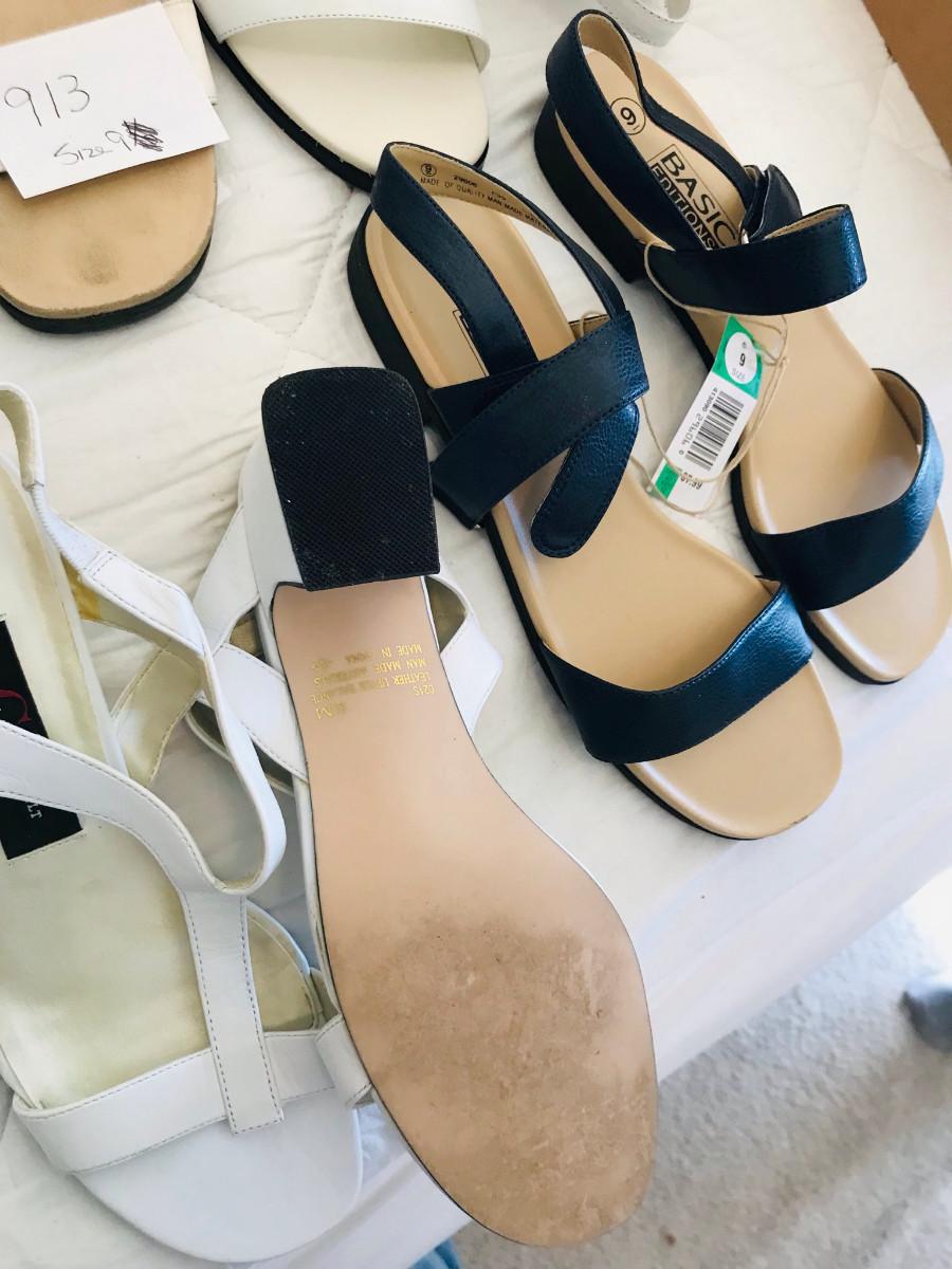 On shoes: New, some with tags! Please see photos for quantity, colors, size, and condition.