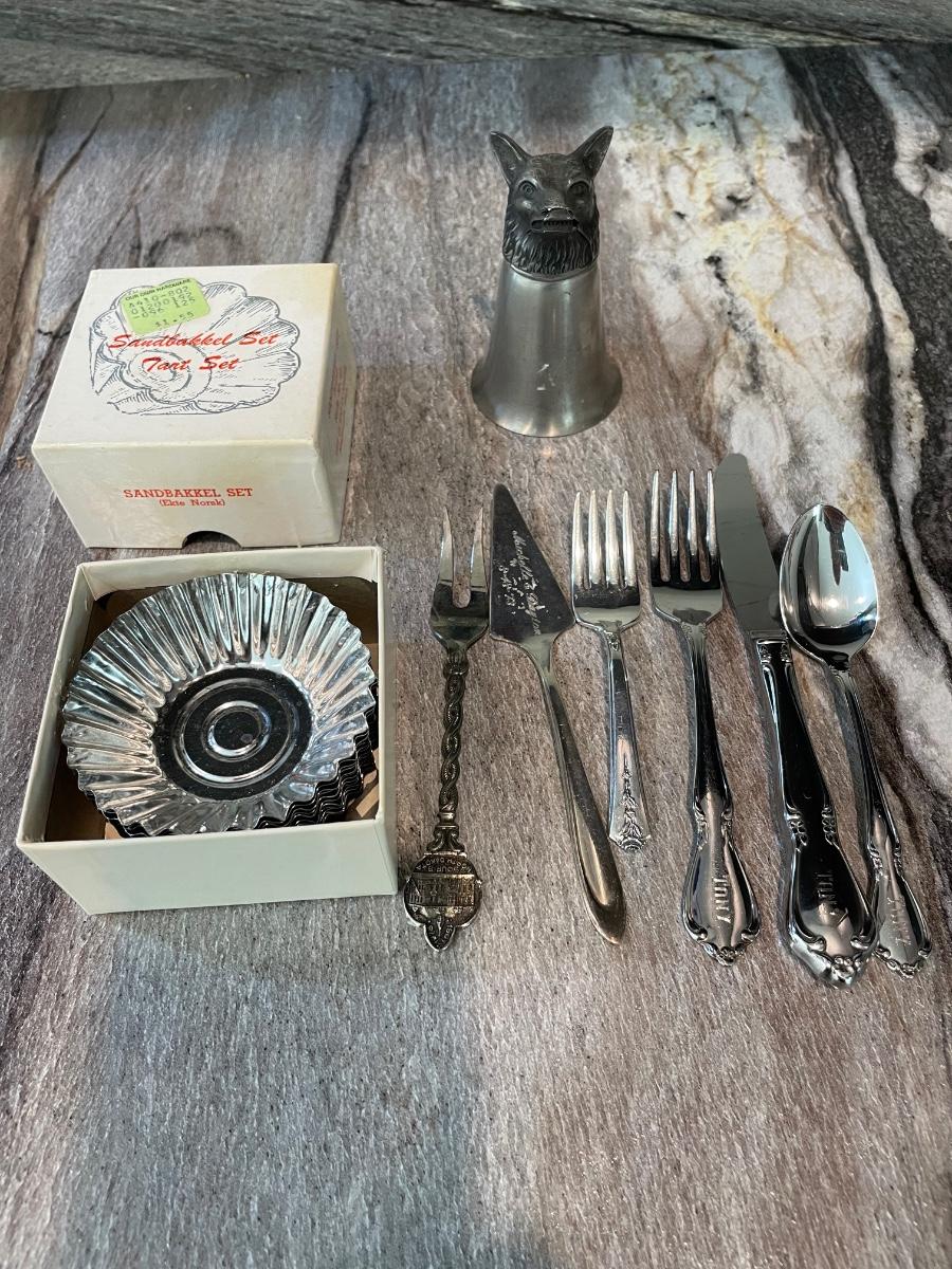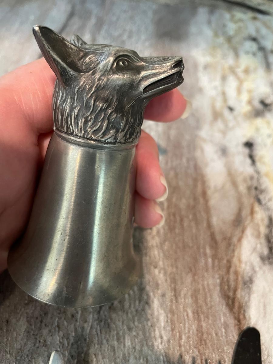 Fox head Stirrup Cup/Jigger Barware and Sandbakkel Tart Set