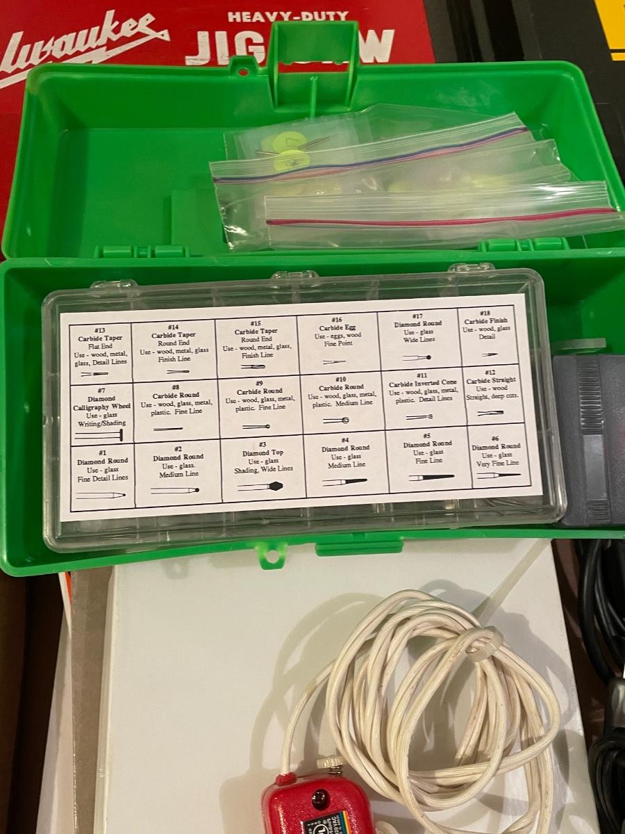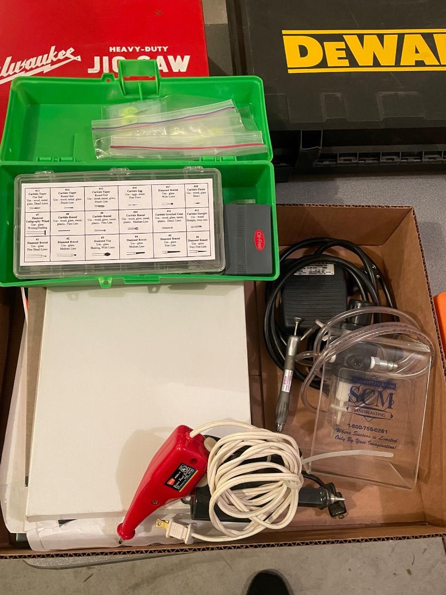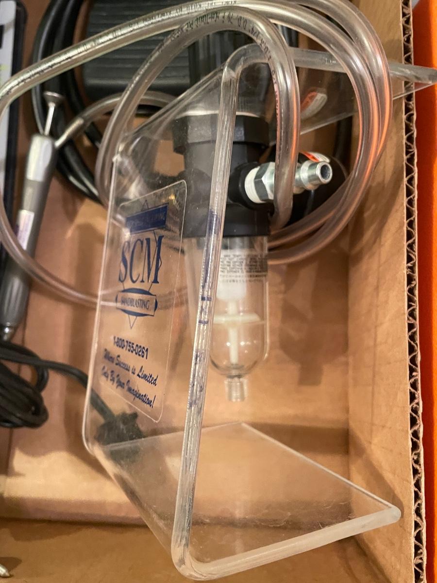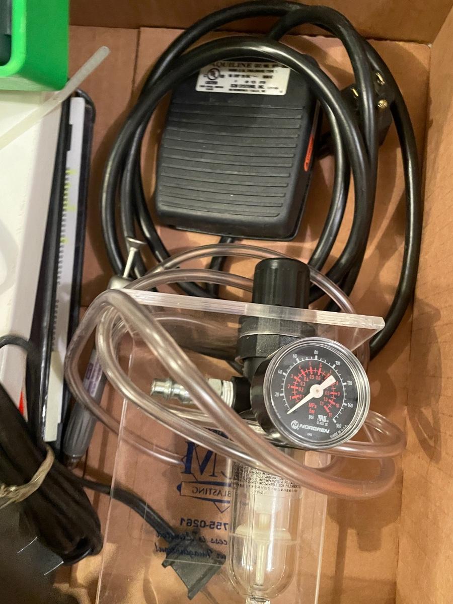 Sandblaster gun w/foot pedal and other engraving stuff in box