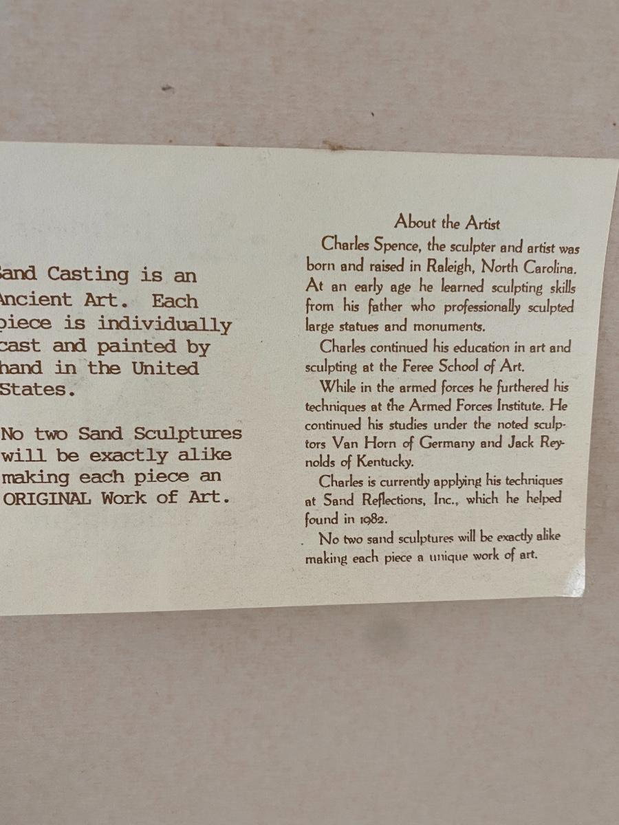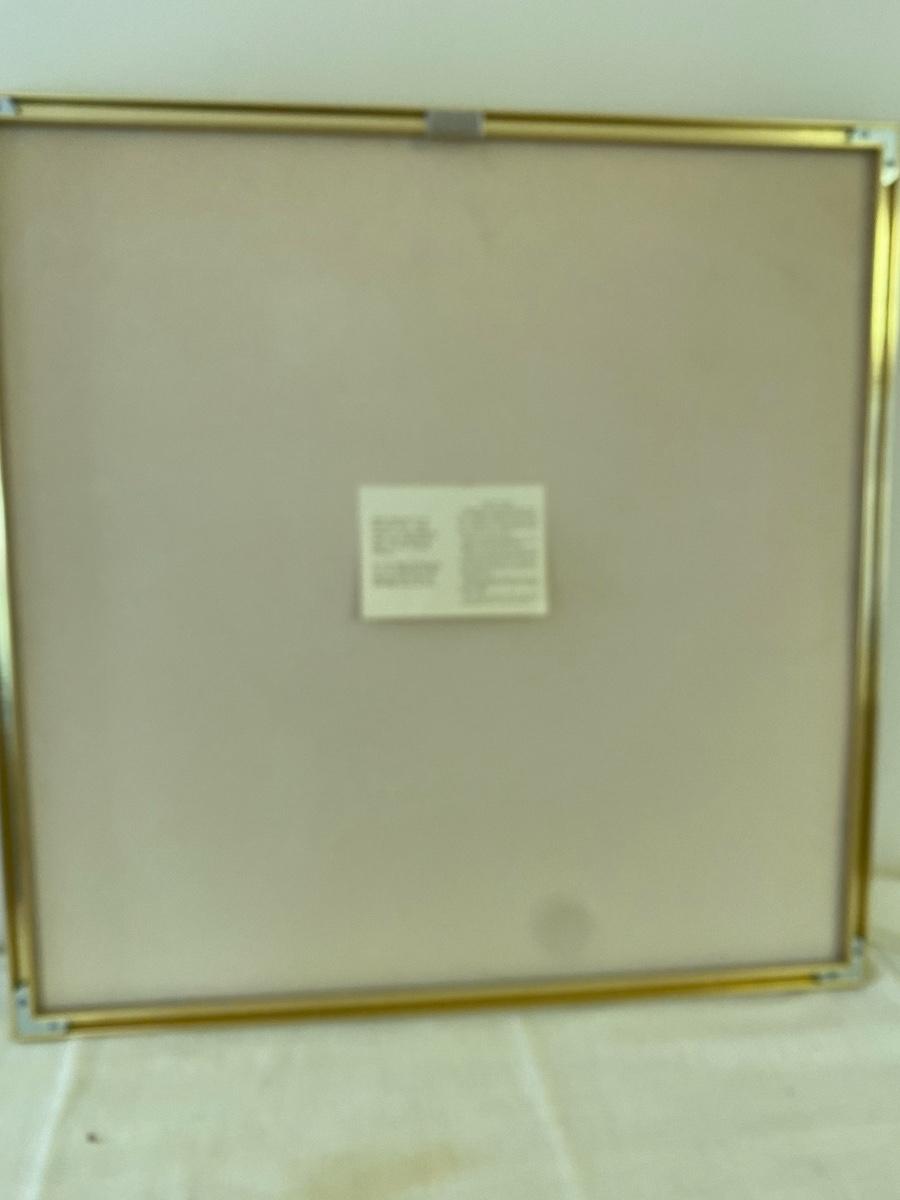 Unable to read signature on the front. Information on the back says the artist is Charles Spence. Measures 24 x 24” Framed