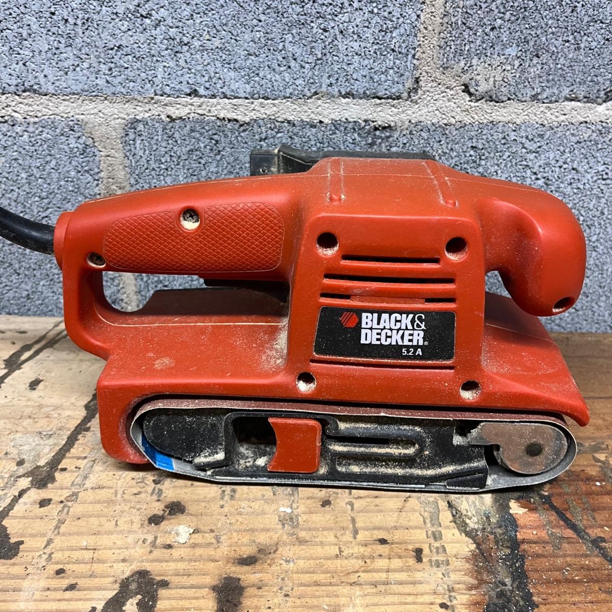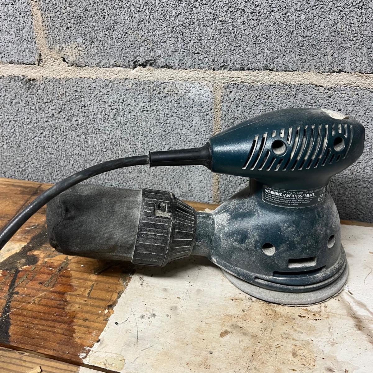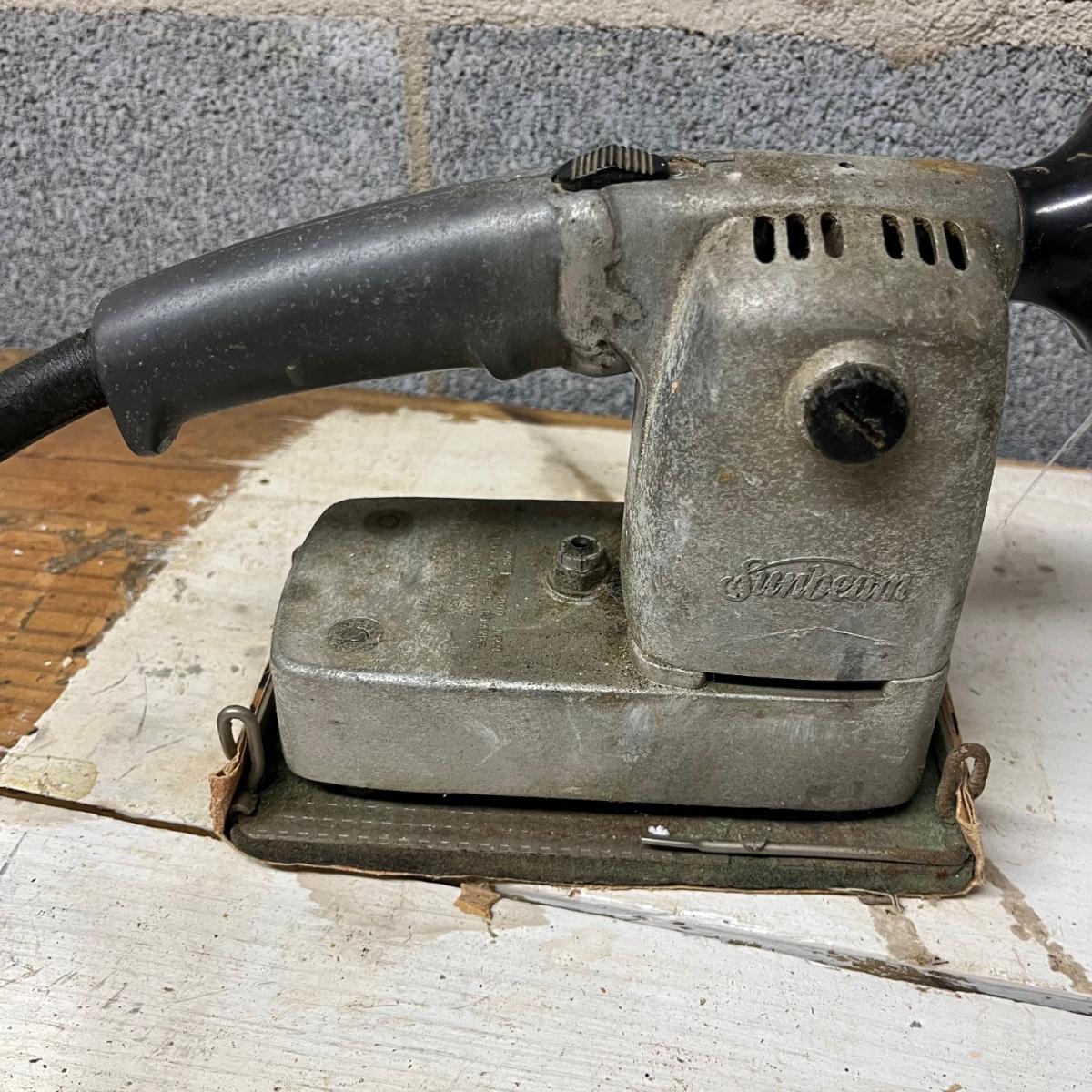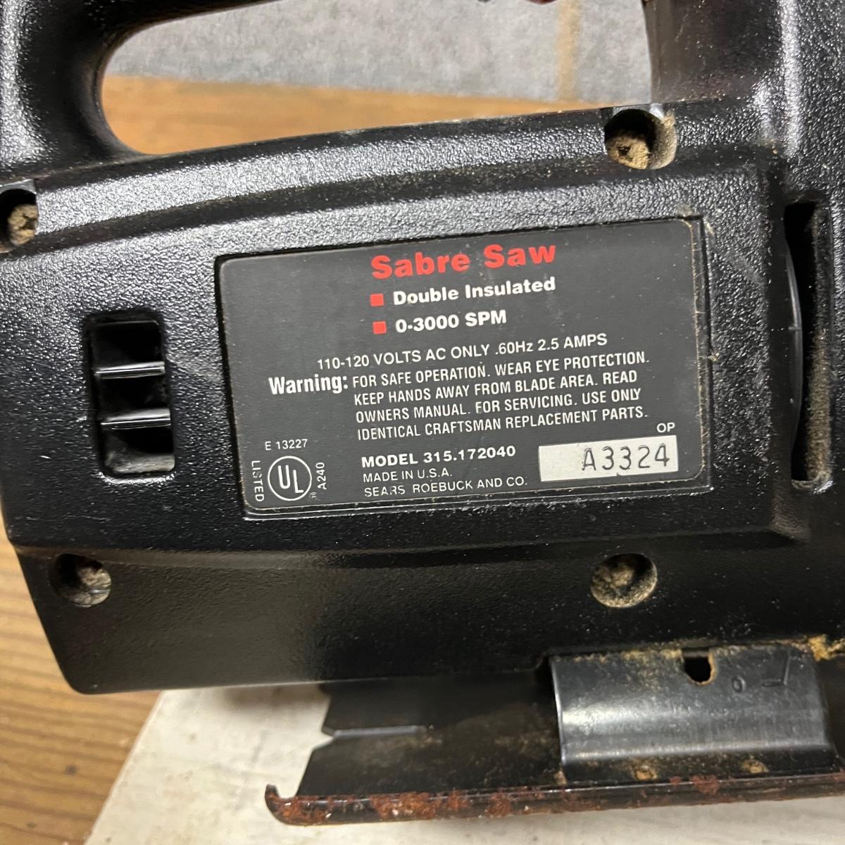 Lot includes a Black and Decker belt sander model # BR-300 and orbital sander model # RO100. Also includes a Craftsman Sabre saw and a Sunbeam sander. All items powered on when tested.
