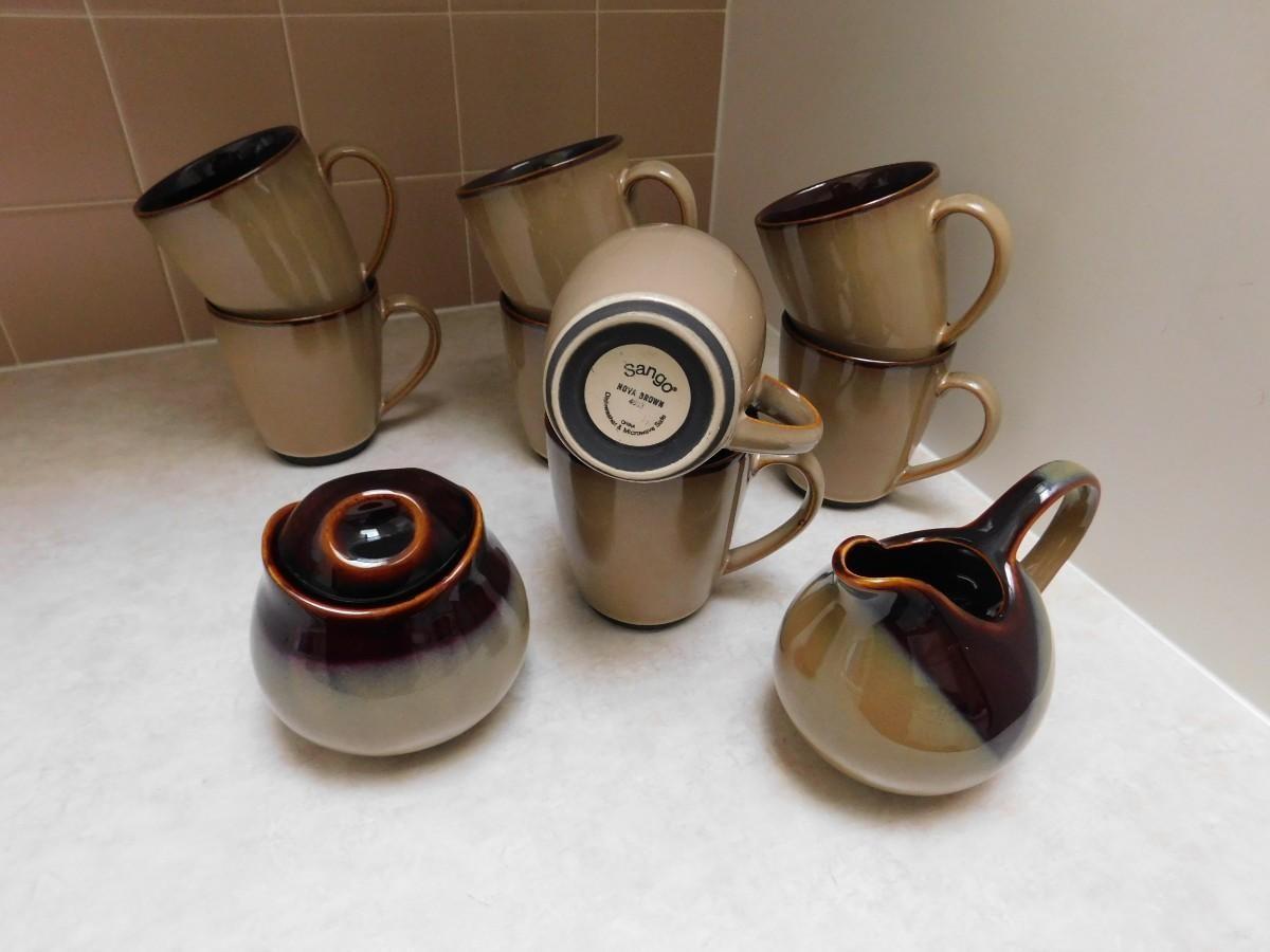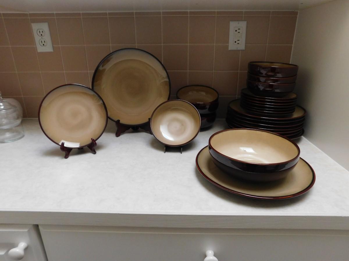 SANGO DINNERWARE FOR 8 WITH SERVING BOWL AND PLATTER