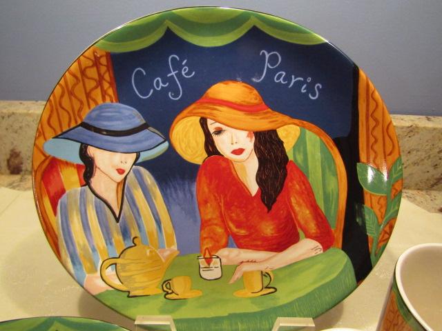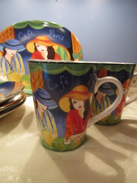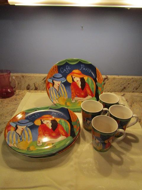 Sango Plate and Mug Set (4 of Each)- Cafe Paris Pattern