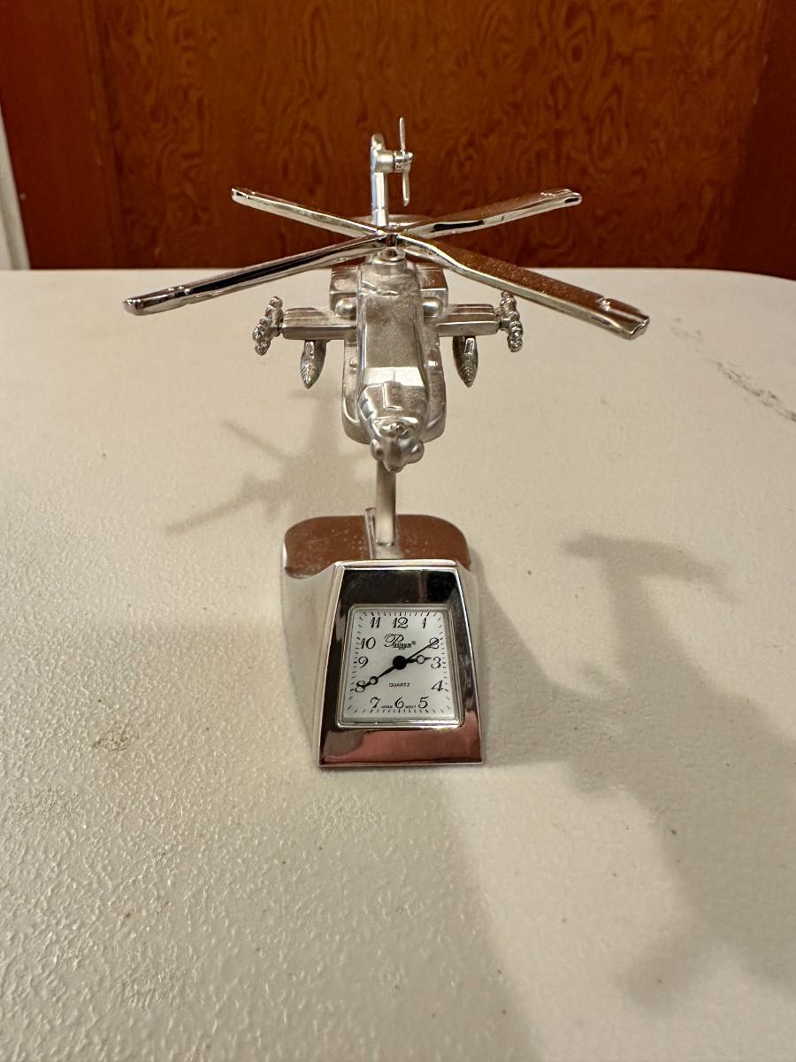 Sanis Enterprises Silver War Helicopter Novelty Desk Clock. C395SIL Preowned.