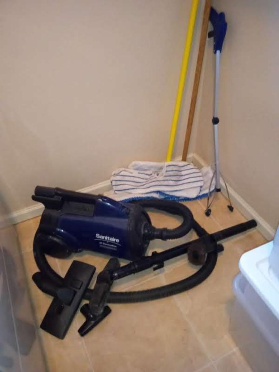SANITAIRE SMALL CANISTER VACUUM AND HARDWOOD FLOOR MOP