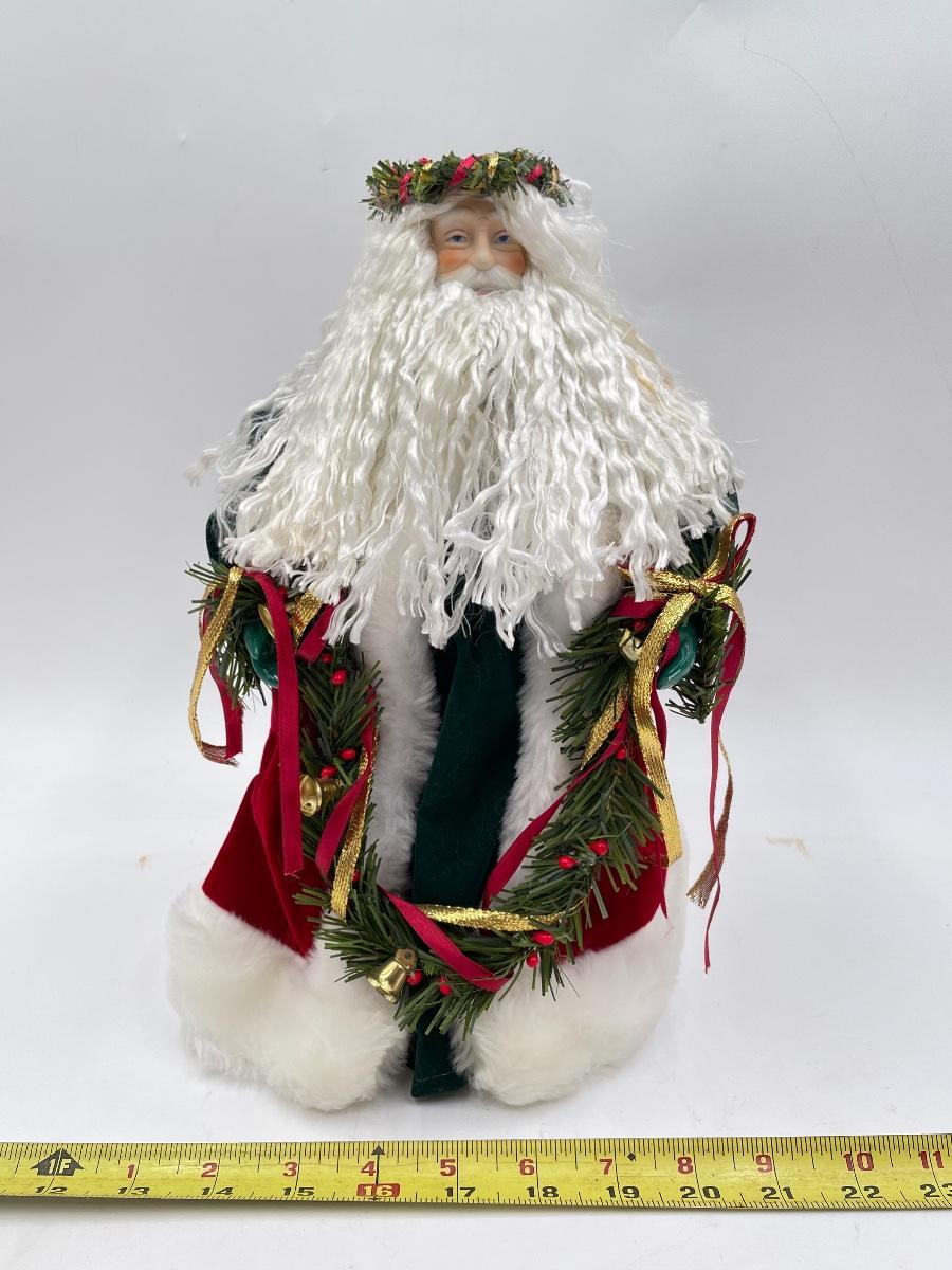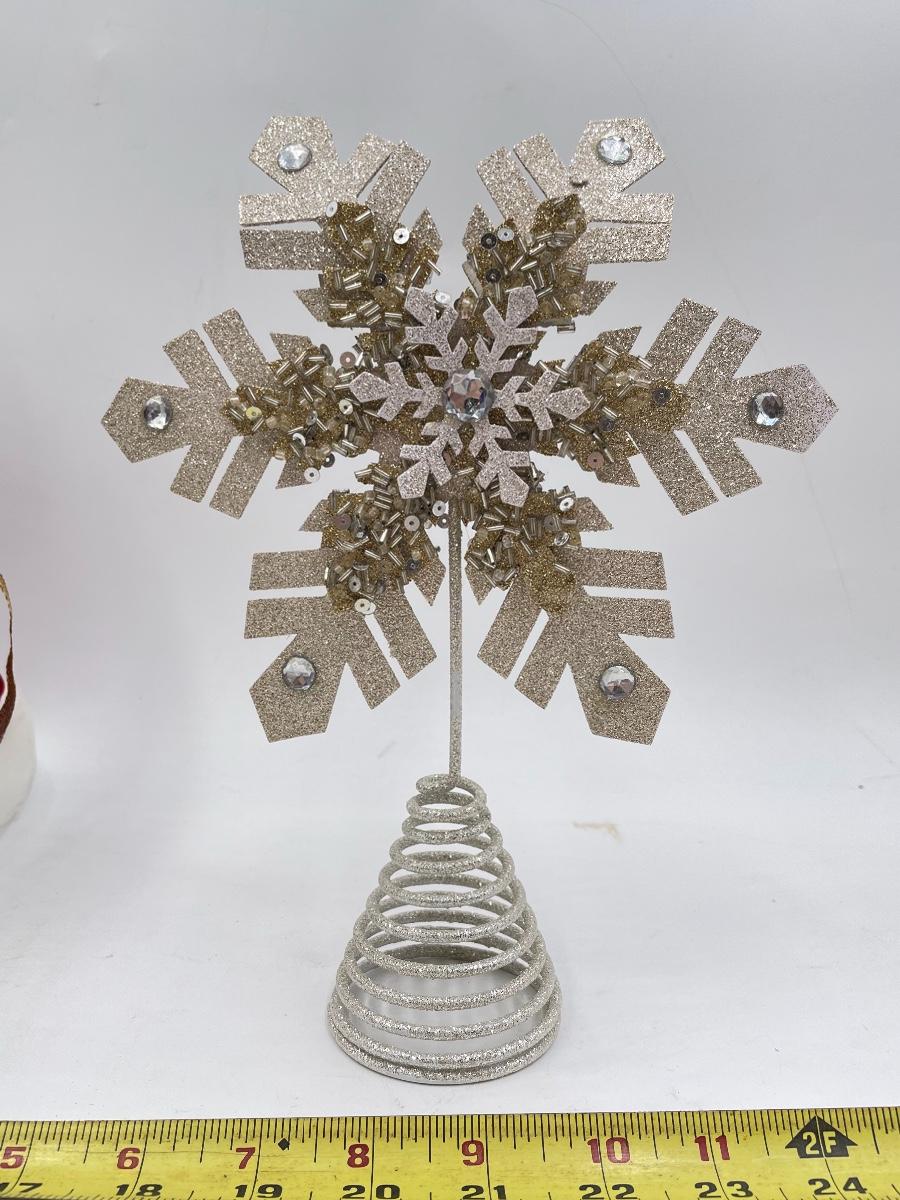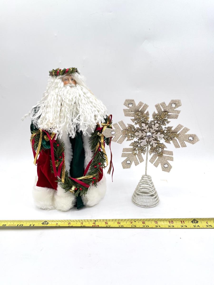 Star tree topper stands about 10” tall. Santa is about 12” tall and does have some staining in his hair, as shown - otherwise in good condition.