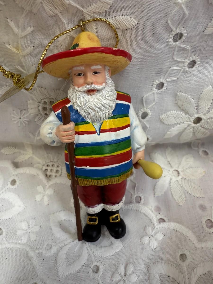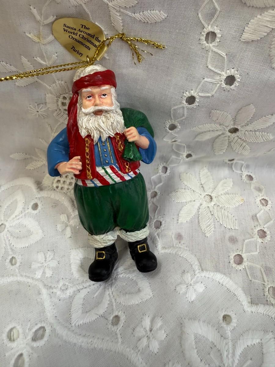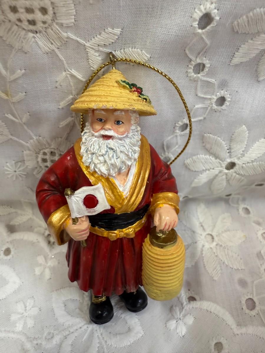 Celebrate the diverse traditions of holiday cheer with this unique "Santa Around the World" lot. Each ornament showcases Santa in various cultural attire, bringing a global touch to your festivities.