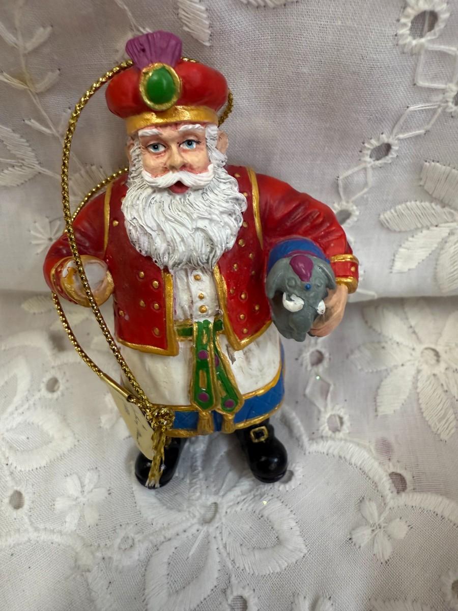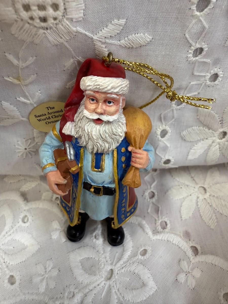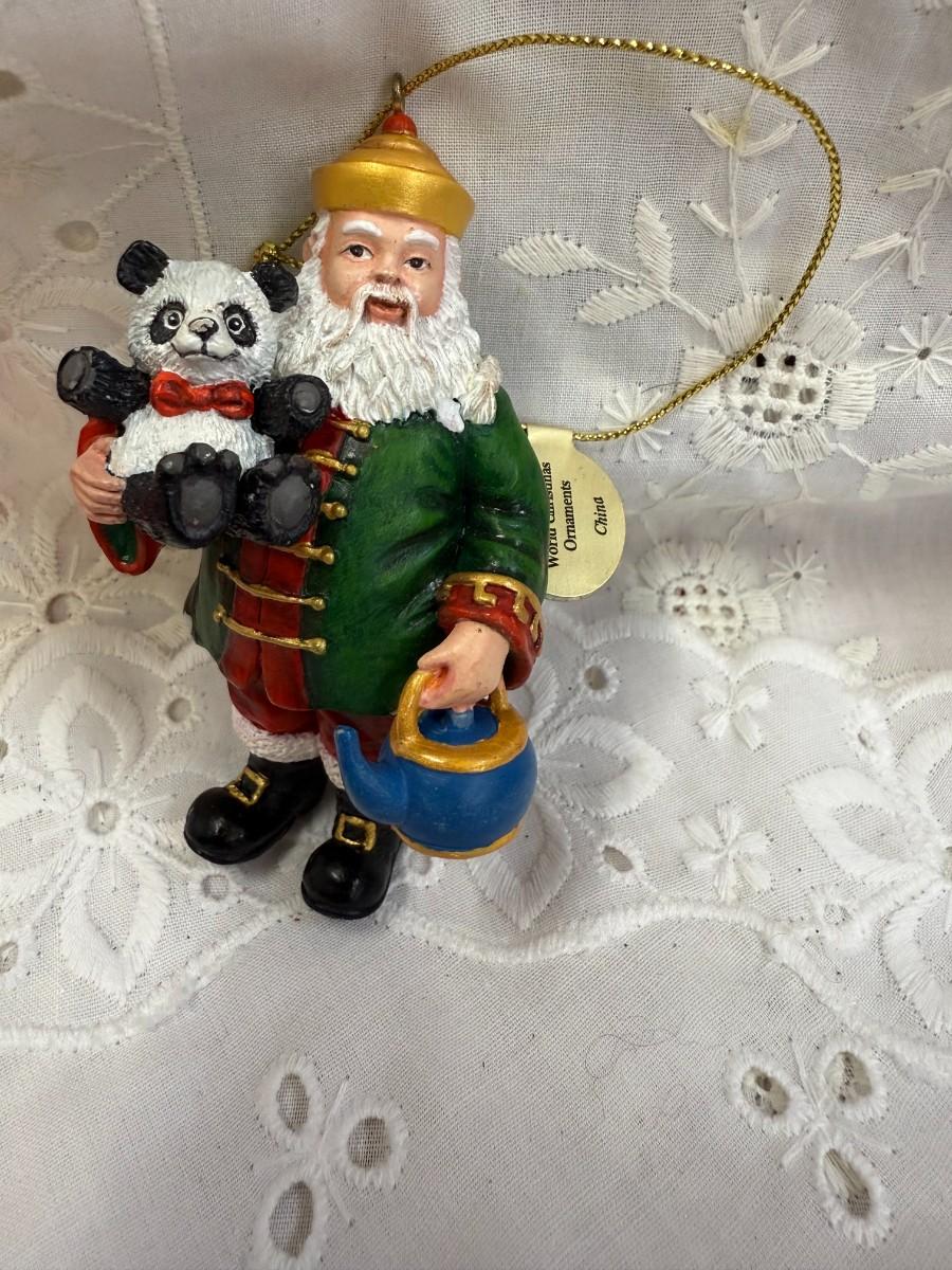 Celebrate the diverse traditions of holiday cheer with this unique "Santa Around the World" lot. Each ornament showcases Santa in various cultural attire, bringing a global touch to your festivities.