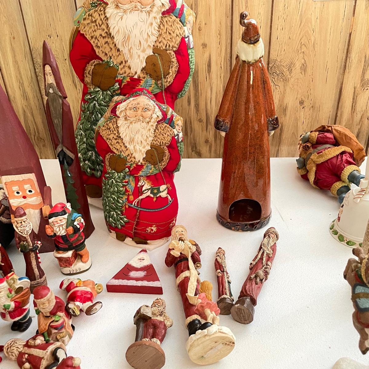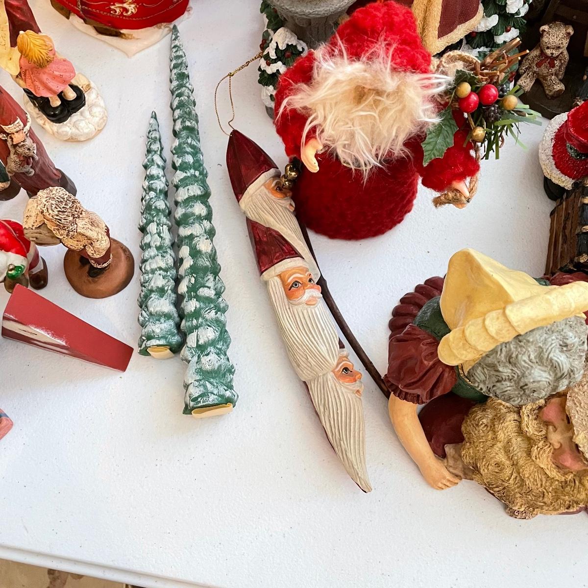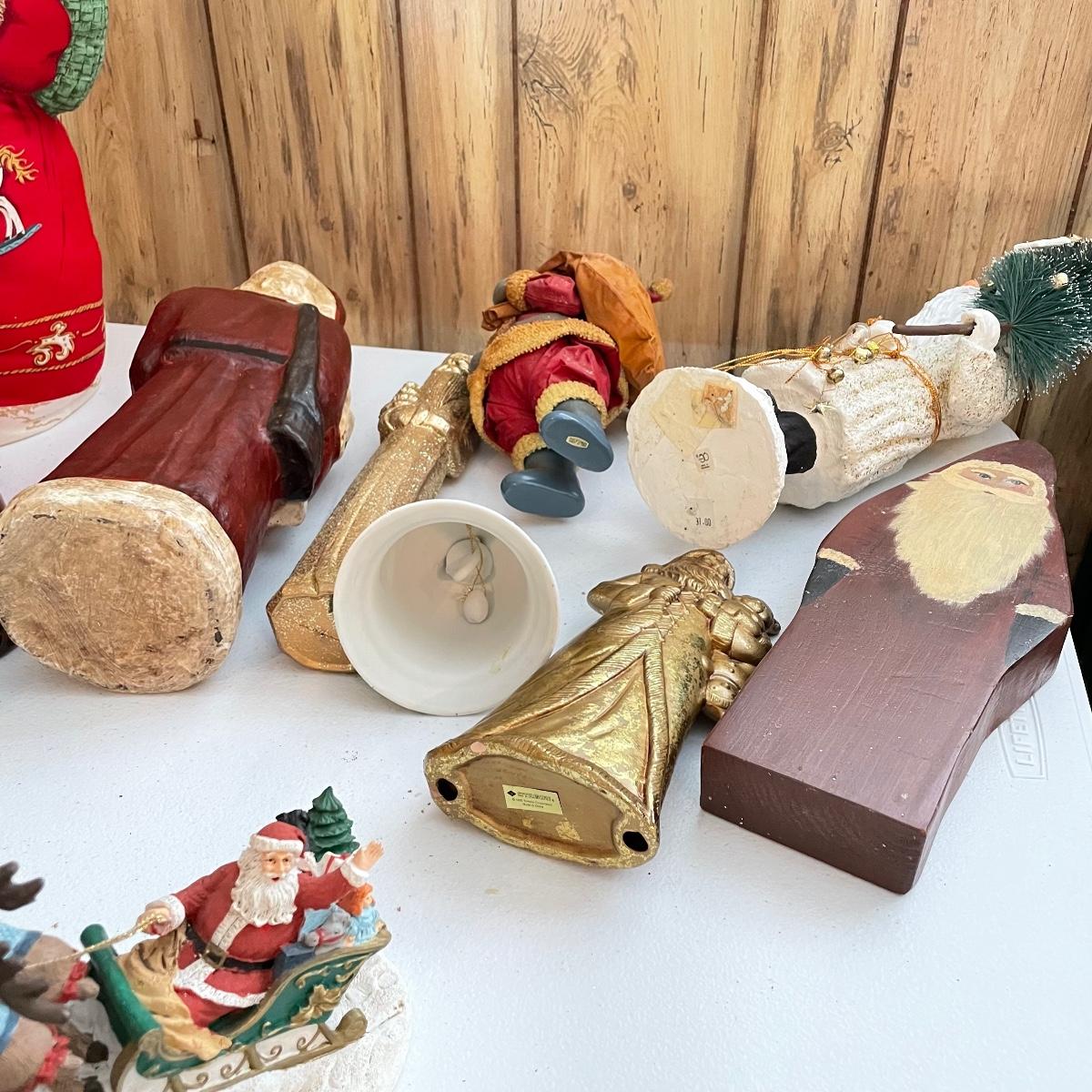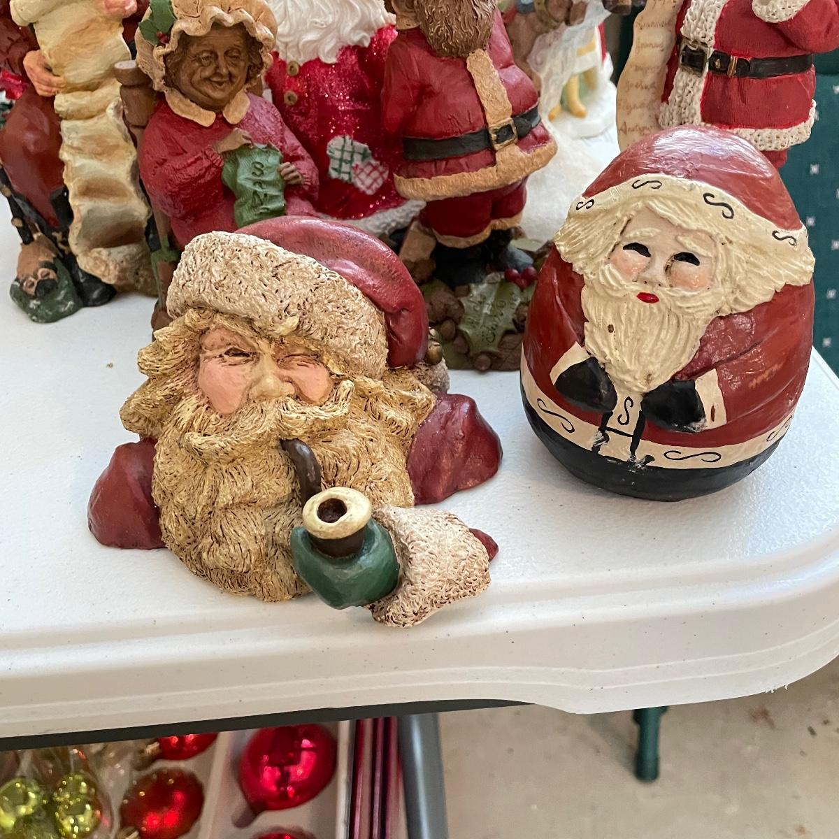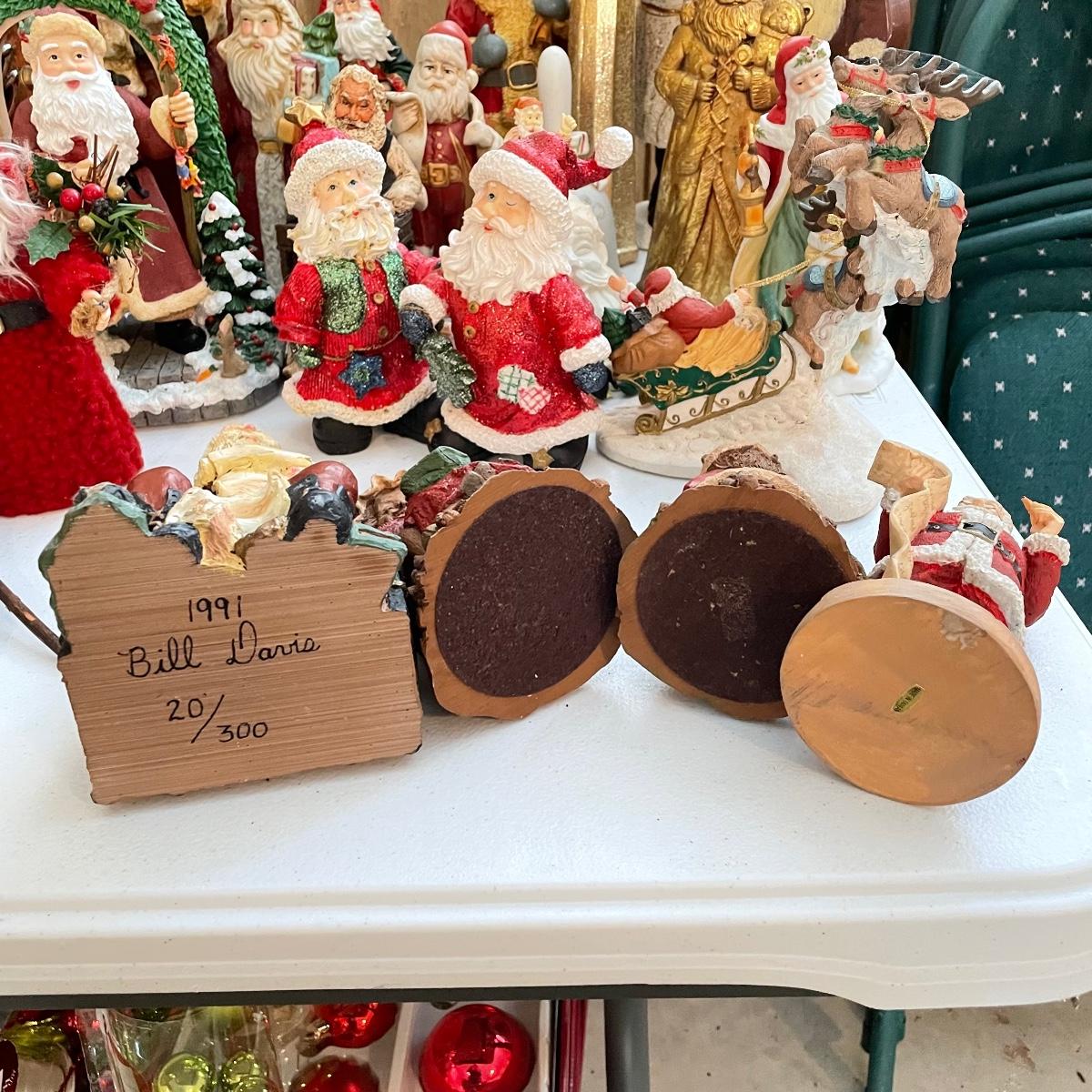 Huge selection of Santas to brighten up your holiday season! Santas are made from a variety of materials like resin, wood, porcelain and more. One music box with Santa holding a bell plays “Santa Claus is Coming to Town”. There is on other cute musical figurine, this piece plays a tune, but extremely slowly. Two first editions from Goebel’s Mark Klaus Kollection. Mr. & Mrs. Claus by Tom Clark, and other signed Santas. See images. The tallest pillow is 18”. The black pillow is weighted. Local pick up only.