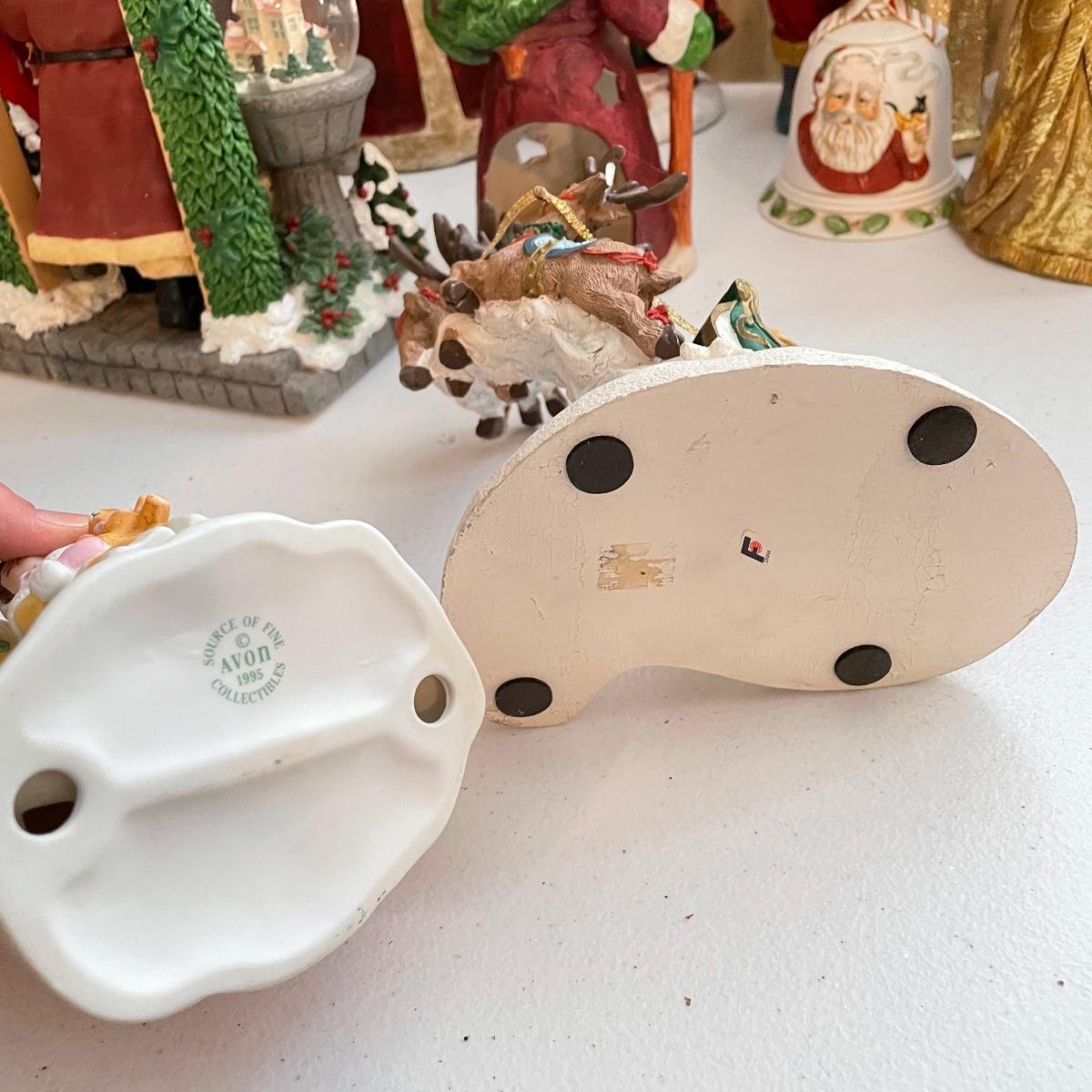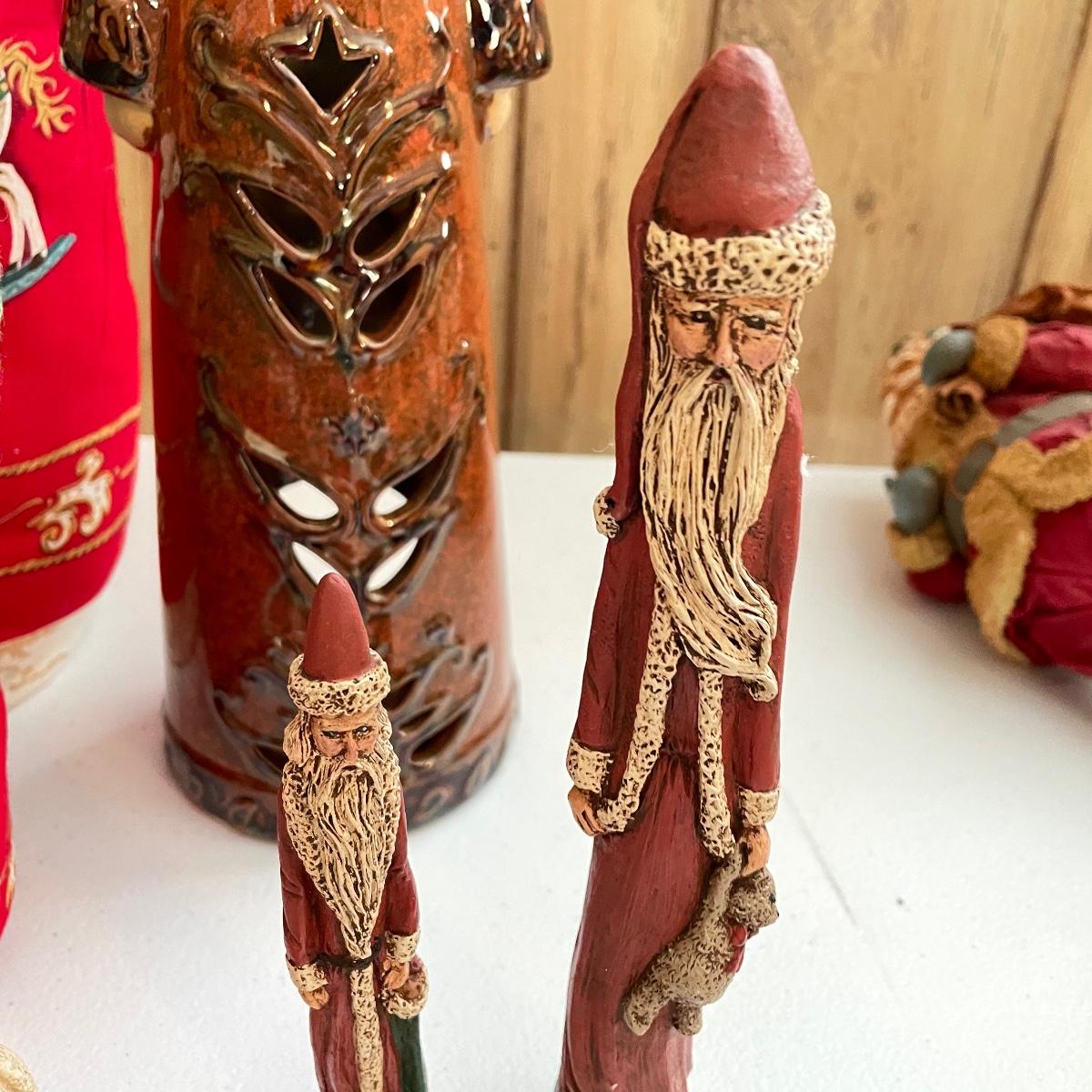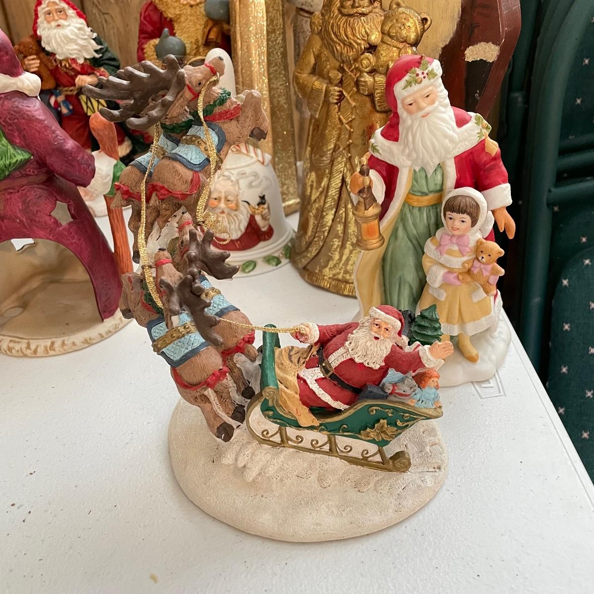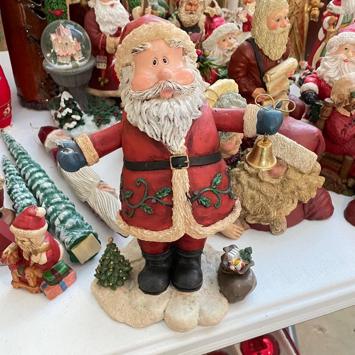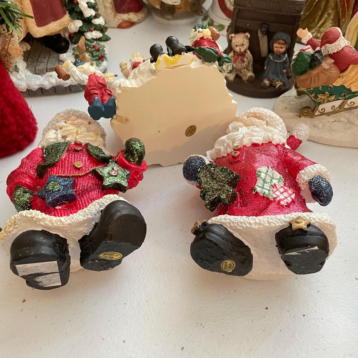 Huge selection of Santas to brighten up your holiday season! Santas are made from a variety of materials like resin, wood, porcelain and more. One music box with Santa holding a bell plays “Santa Claus is Coming to Town”. There is on other cute musical figurine, this piece plays a tune, but extremely slowly. Two first editions from Goebel’s Mark Klaus Kollection. Mr. & Mrs. Claus by Tom Clark, and other signed Santas. See images. The tallest pillow is 18”. The black pillow is weighted. Local pick up only.