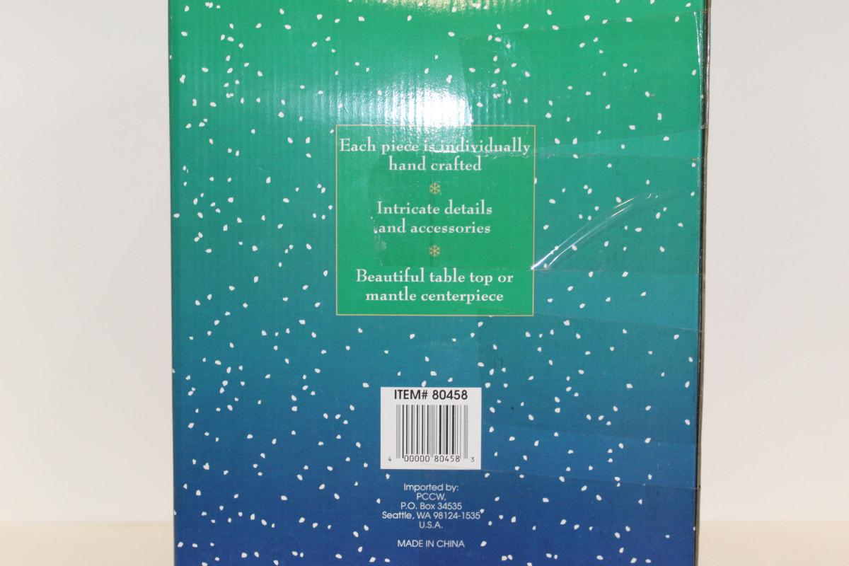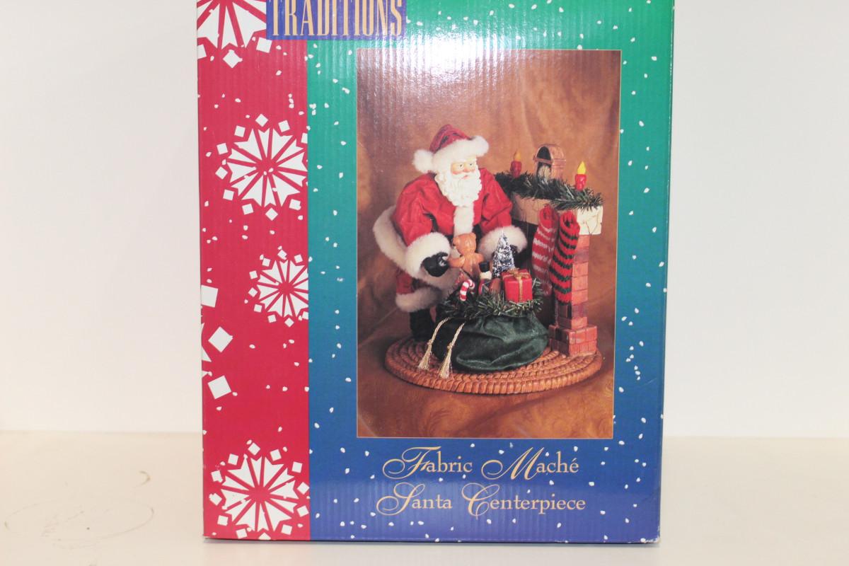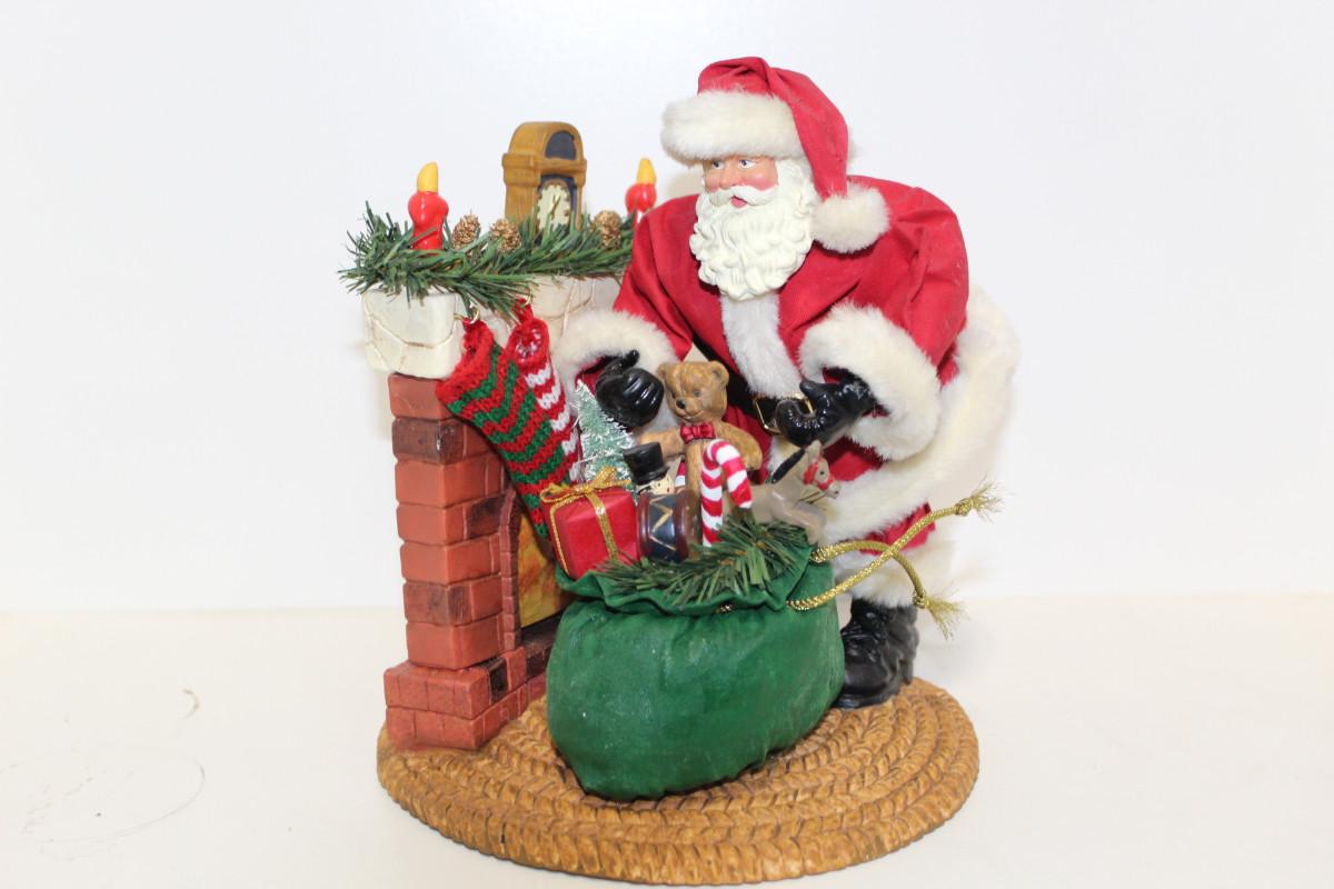 Santa Claus Figurine Christmas Sculpture, Santa by Fireplace Tree with Presents