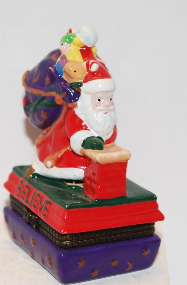 Santa Claus on Chimney Hinged Trinket Box 3 1/2" H